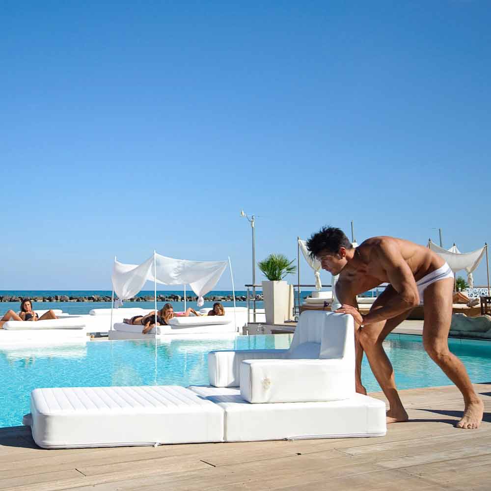 Trona es un sillón flotante para piscina con un diseño único fabricado completamente en Italia.