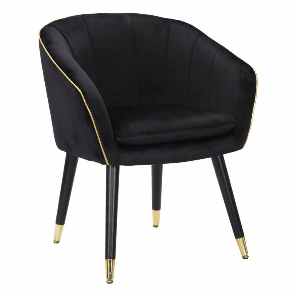 Sillón de diseño moderno en madera con asiento tapizado en tela.