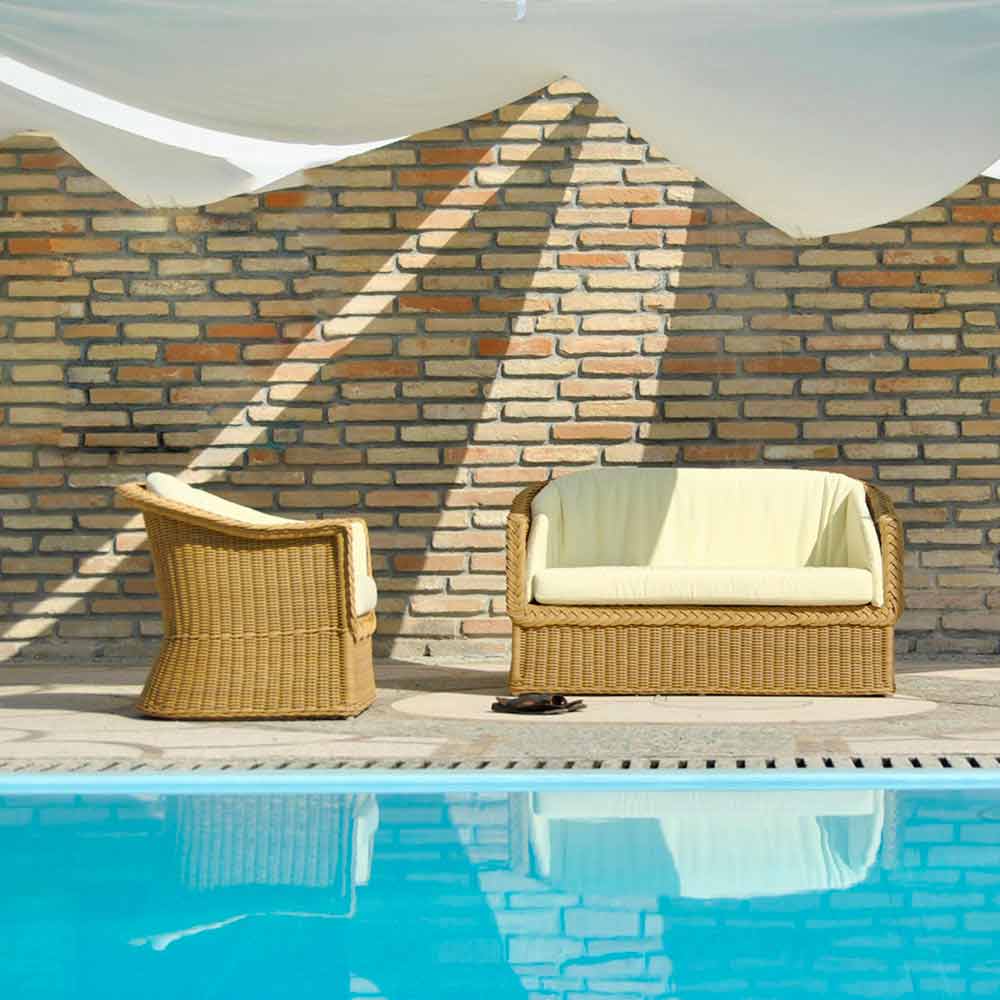 Jonny es un bonito sillón de 2 plazas para jardín realizado por artesanos cualificados.