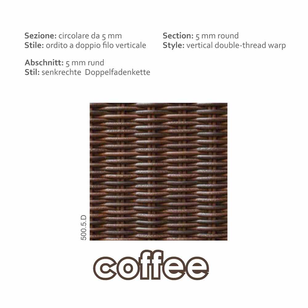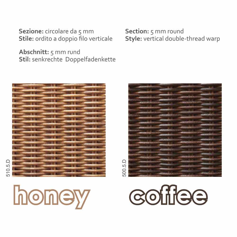 - Fibra de Polietileno HDPE (fibra sintética correspondiente a la fibra natural rattan, dotada de un tacto similar al de la fibra natural).