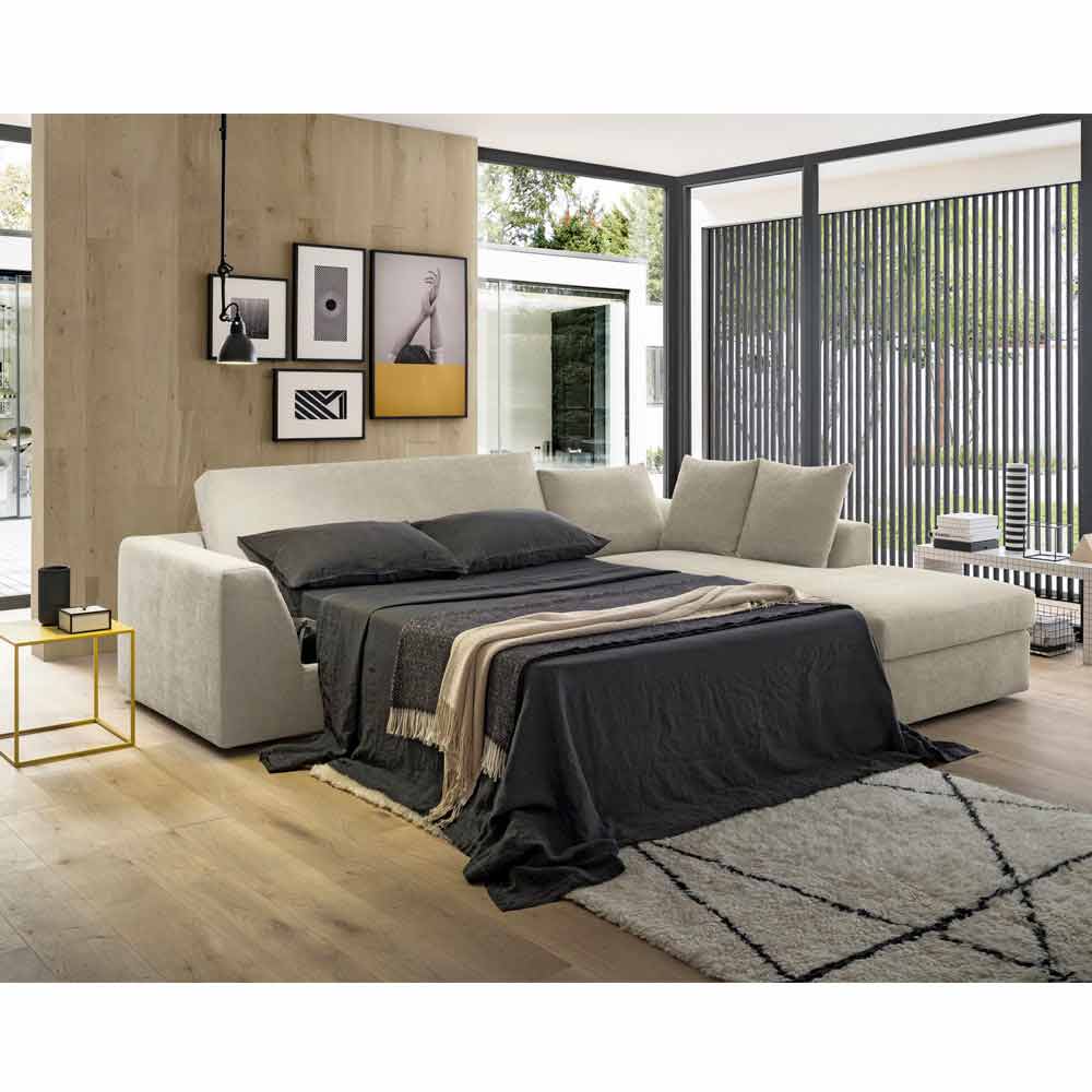 Sofá cama rinconera tapizado en tejido beige fabricado en Italia