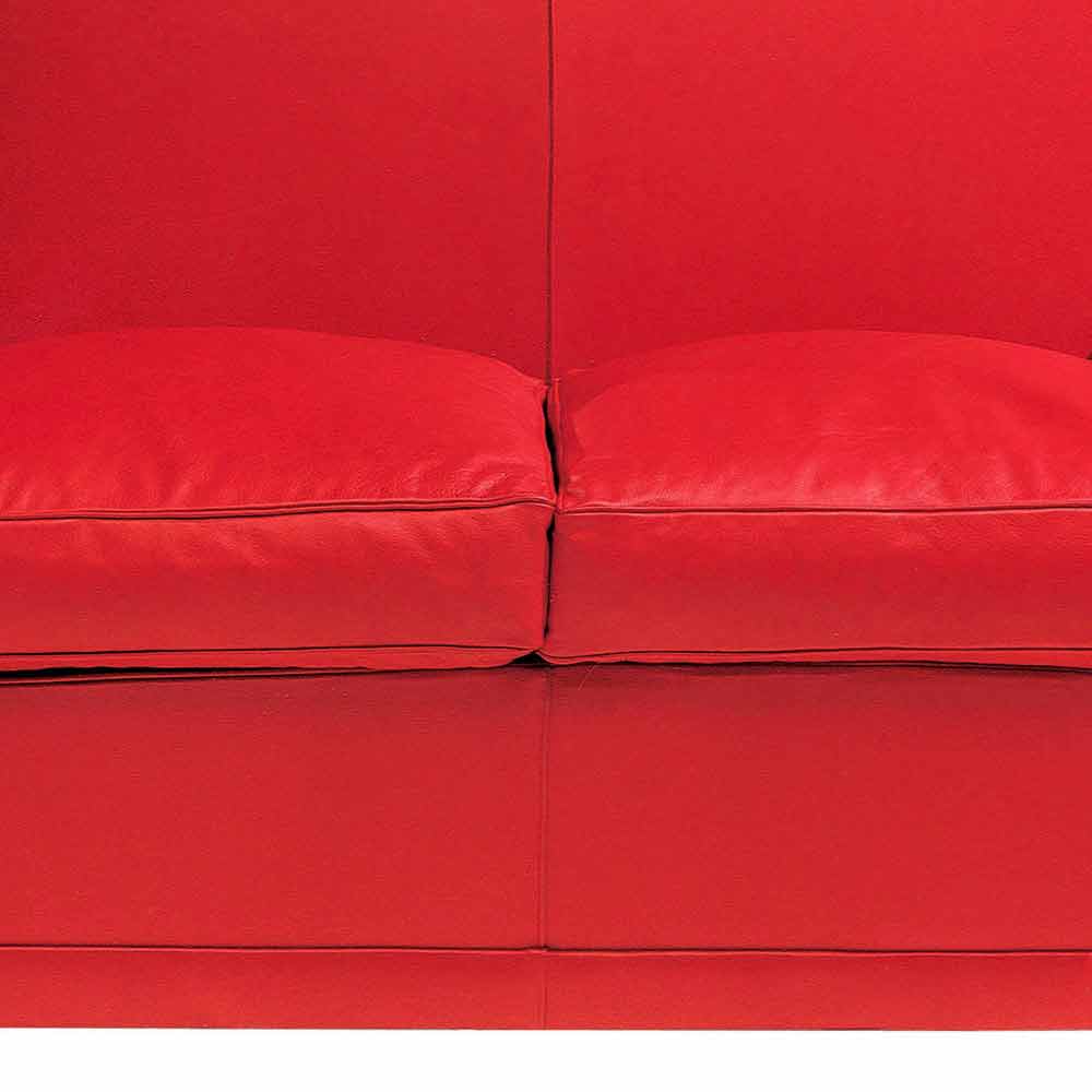 Sofá moderno de 2 plazas tapizado en cuero con pies de madera Made in Italy.