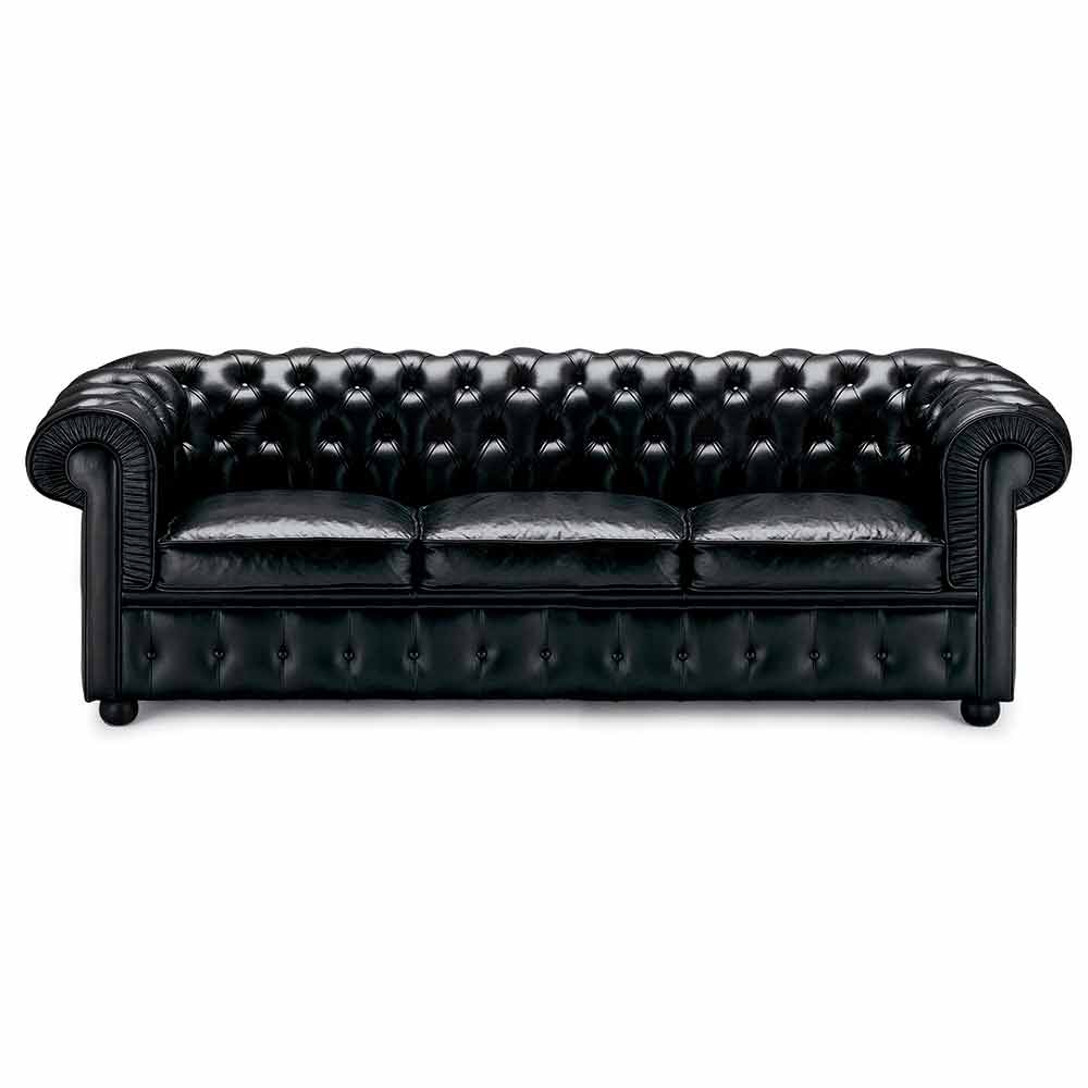 Sofá de 3 plazas con estructura interna de madera acolchada con espuma de poliuretano y forro de fibra de poliéster, cojines de asiento en pluma de oca esterilizada, tapizado de cuero (no desenfundable) y pies de madera lacada , made in Italy. Un estilo de decoración imponente y elegante capaz de caracterizar todo el salón gracias a su extrema elegancia dada por el uso del cuero y la particular textura acolchada que recubre todo el sofá para un resultado exclusivo . Ideal tanto para ambientes de estilo clásico en los que encaja a la perfección creando una maravillosa armonía como también para espacios con una estética contemporánea en los que da vida a un juego de contrastes sin precedentes. Los materiales elegidos y utilizados para la realización de este complemento también permiten obtener un asiento particularmente acogedor y confortable , por tanto ideal para pasar maravillosos momentos dedicados al relax en su salón.