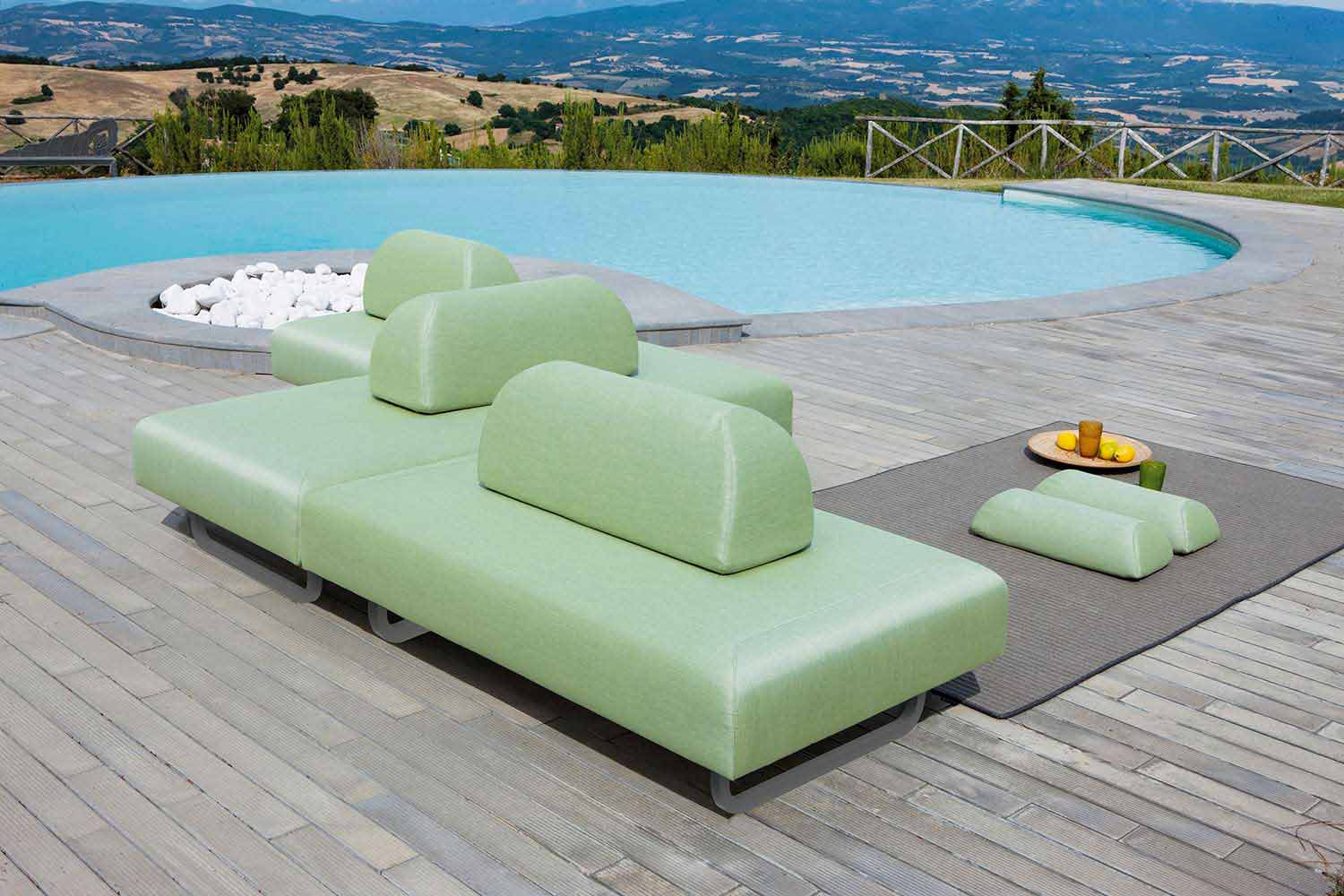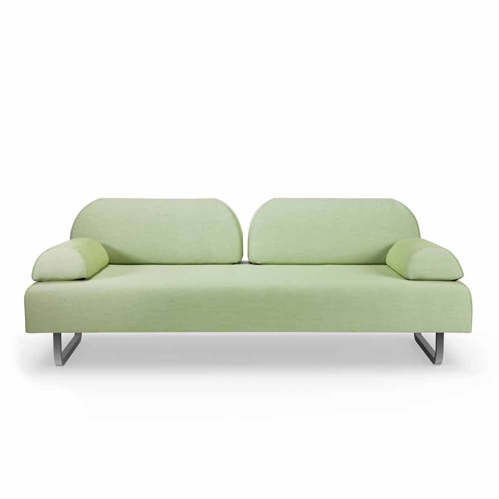 Italia con materias primas seleccionadas que garantizan un producto final de alta calidad. Caracterizado por un diseño entre futurista y retro para crear un producto único e innovador, el sofá incluye dos cojines de respaldo que se pueden colocar a voluntad, lo que lo hace versátil y modular.
