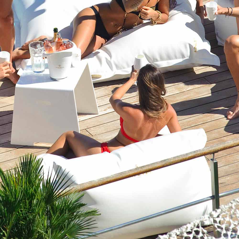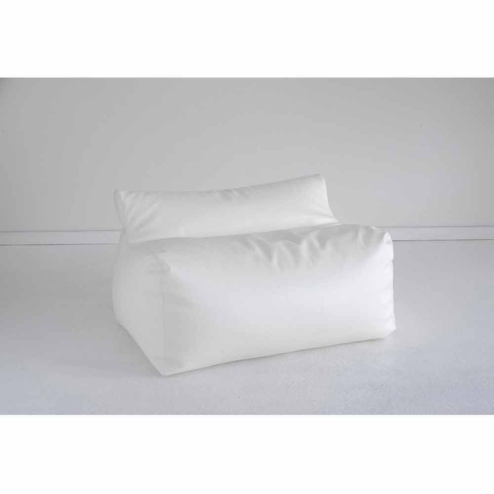Este sillón está constituido por un cómodo asiento que sostiene adecuadamente la espalda y puede adaptarse a las formas del cuerpo. Ha sido realizado a mano y está relleno de bolas de poliestireno. Está revestido en Ecopiel náutica Eco-Friendly de color blanco que ha sido tratada pa Está certificado y es EPS, hidro-repelente e ignífugo.