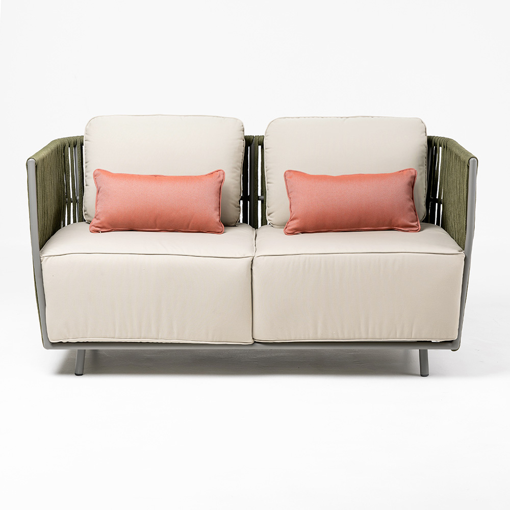 Este sofá con amplios asientos es fácil de manejar y resistente pero al mismo tiempo mantiene un diseño limpio y esencial. Su estilo moderno le confiere un fuerte carácter haciéndolo perfecto para amueblar espacios de exterior tanto en entornos privados como contract.