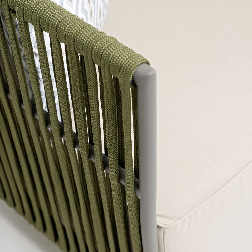Gracias al uso de materiales especiales de alta calidad , este sofá de exterior garantiza una excelente resistencia a la intemperie, la suciedad, el polvo y las manchas.
