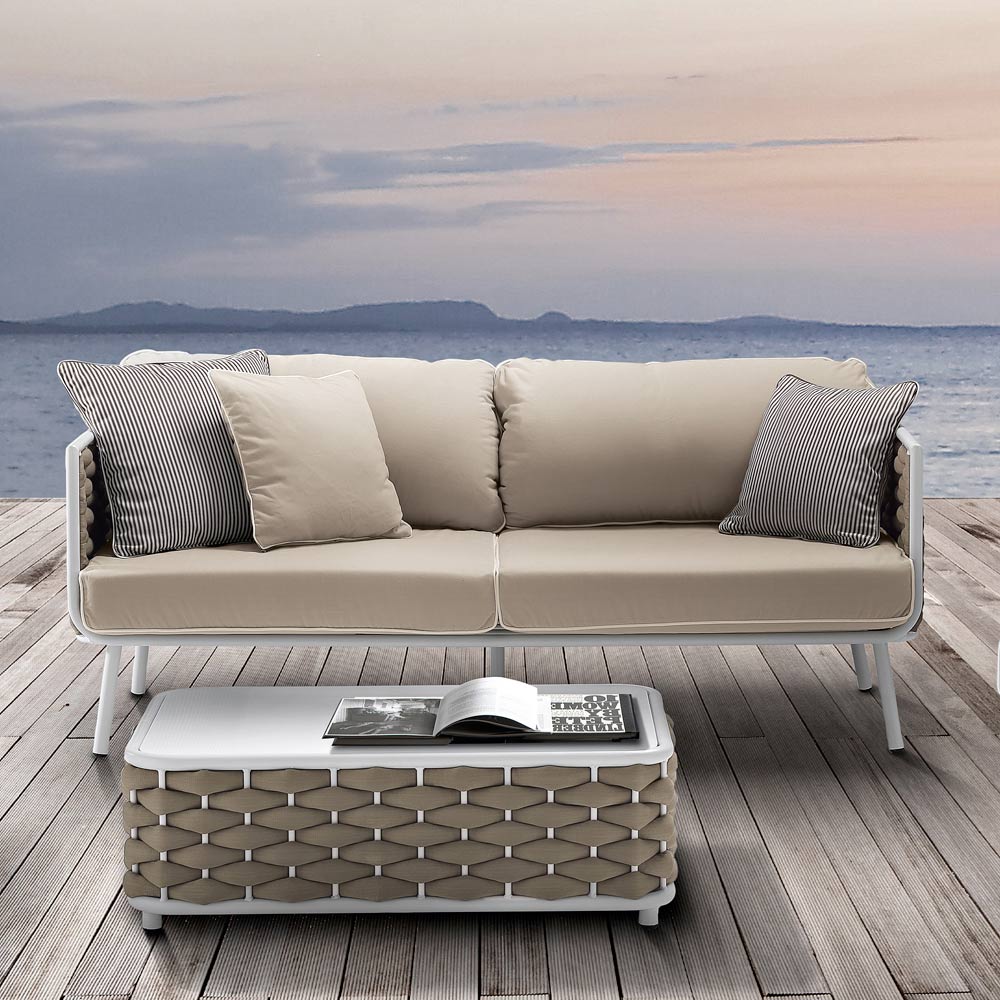 Gracias al uso de materiales especiales de alta calidad , este sofá de exterior garantiza una excelente resistencia a la intemperie, la suciedad, el polvo y las manchas.