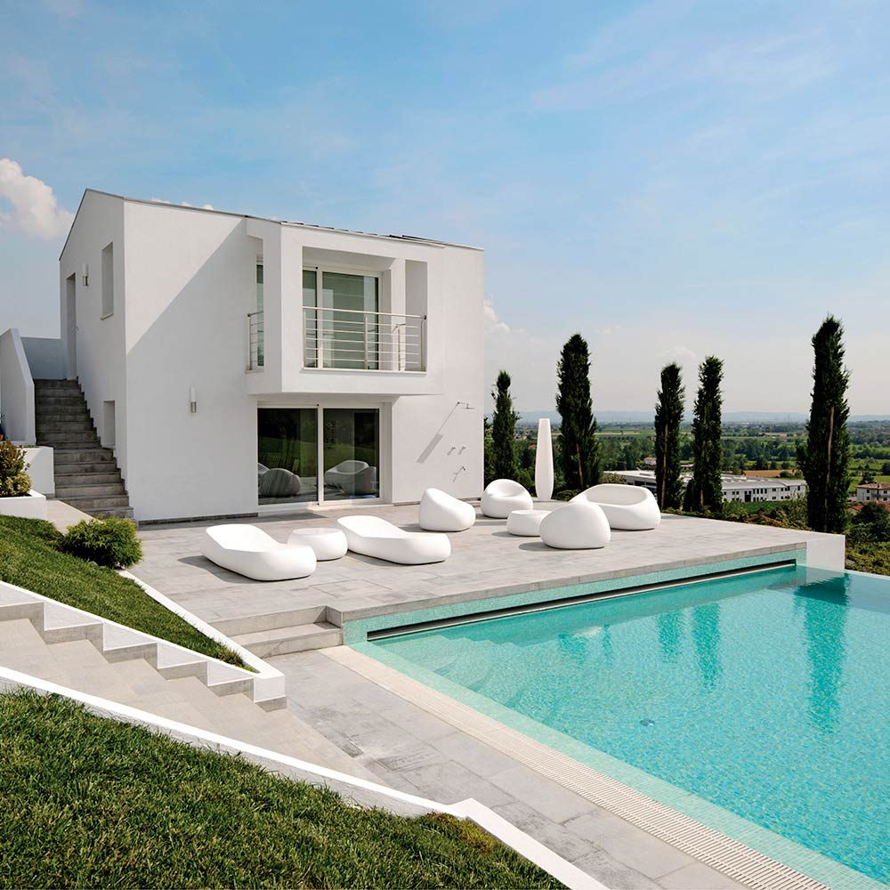 polietileno , disponible en la versión opaca caracterizada por una excelente resistencia al sol, golpes y calor o en la versión lacada resistente y brillante que permite crear juego. de luz y reflejos. Gracias a su diseño único e innovador, logra combinar funcionalidad y practicidad sin descuidar el aspecto visual y de diseño.
