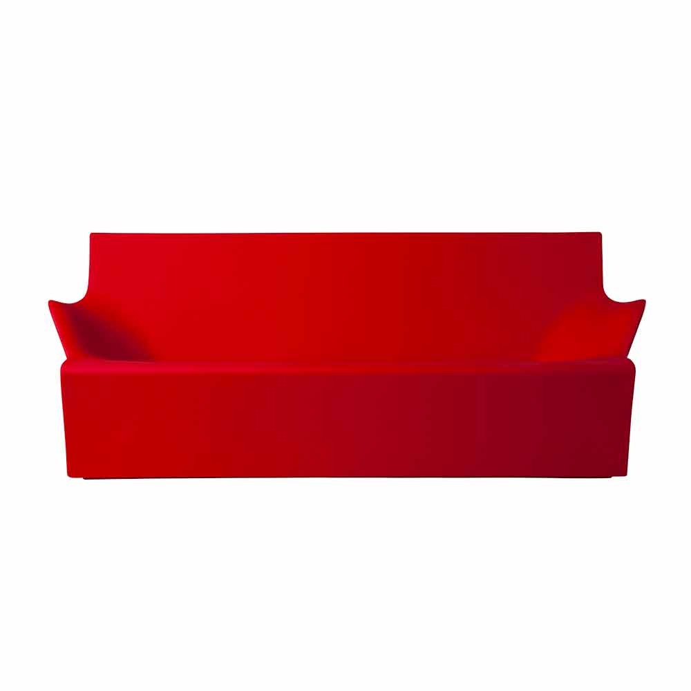 Fabricado en polietileno con la técnica de rotomoldeo, este sofá está disponible en la versión estándar en trece colores diferentes.