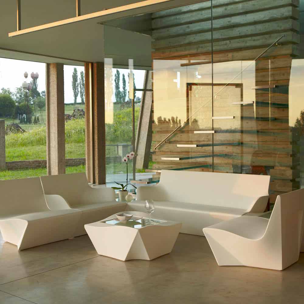 Kami Yon es un sofá de dos plazas con reposabrazos con un diseño abstracto pero esencial que recuerda el origami tradicional del arte japonés, presentando así líneas que remiten a pliegues pero dando forma a un mueble de líneas suaves, originales y elegantes. Perfecto para muebles modernos y contemporáneos tanto en interiores como en exteriores.