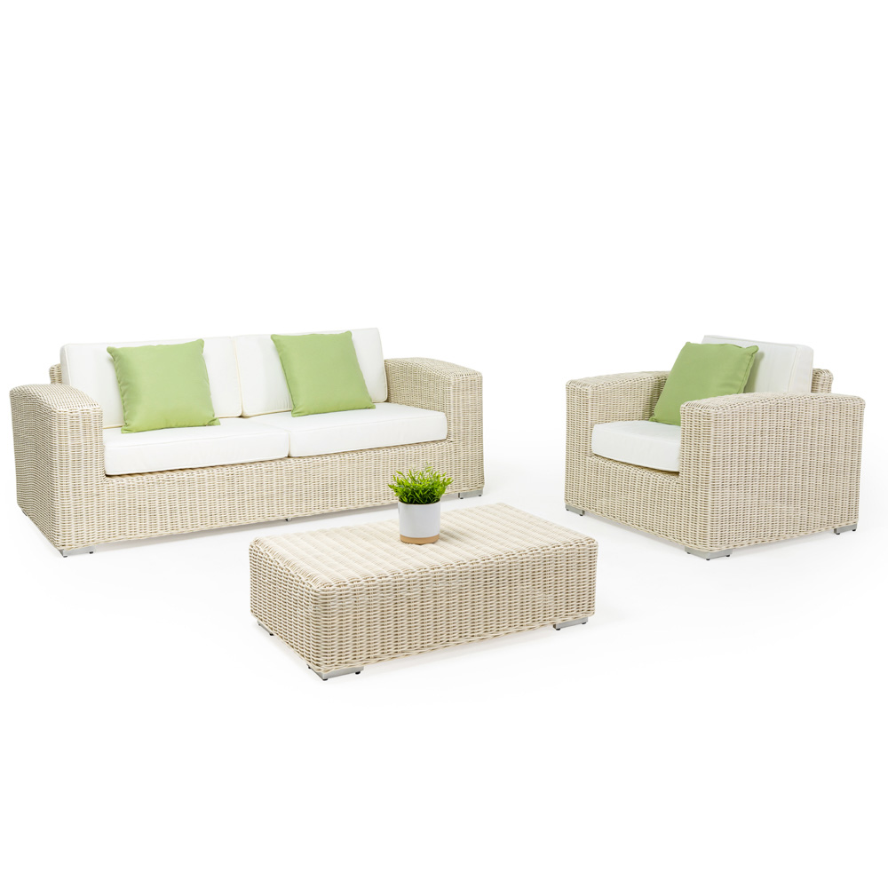 El estilo refinado, la altísima calidad de los materiales y sus formas sinuosas lo hacen perfecto para decoración de interiores y exteriores. Gracias al uso de materiales especiales de alta calidad, este sofá de exterior no teme al mal tiempo ni a los cambios de temperatura gracias a la certificación de la fibra tejida. El amplio asiento puede alojar cómodamente hasta 3 personas, es de hecho perfecto para sus momentos de convivencia.