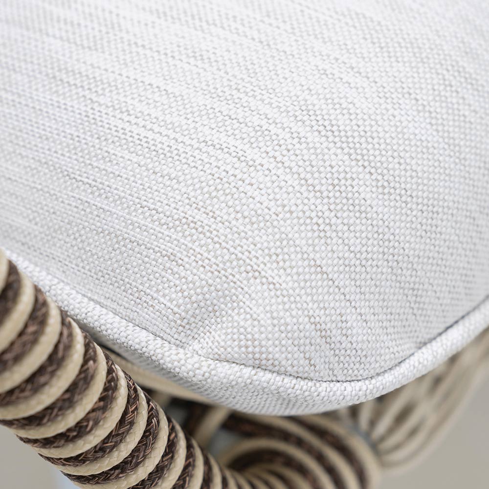Los suaves cojines , vestidos con tela de alta calidad en color blanco roto, invitan a relajarse y disfrutar de la fresca brisa exterior, mientras que su color neutro les permite combinar fácilmente con una amplia gama de decoraciones de exterior. Este sofá no es sólo un asiento, sino un lugar de retiro personal, donde el diseño se une a la funcionalidad y se mezcla con la estética del entorno exterior.
