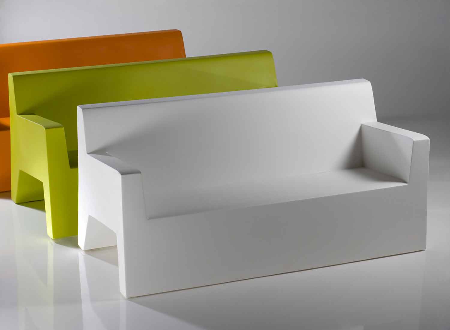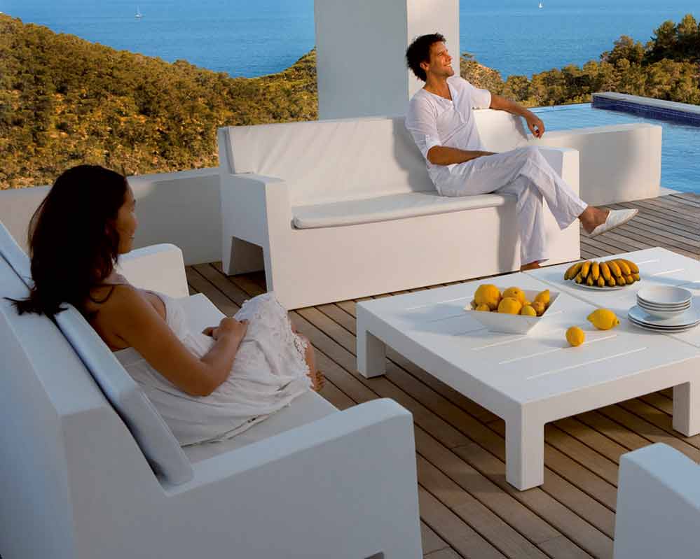 Sofá para exterior colección Jut de Vondom, en resina de polietileno.