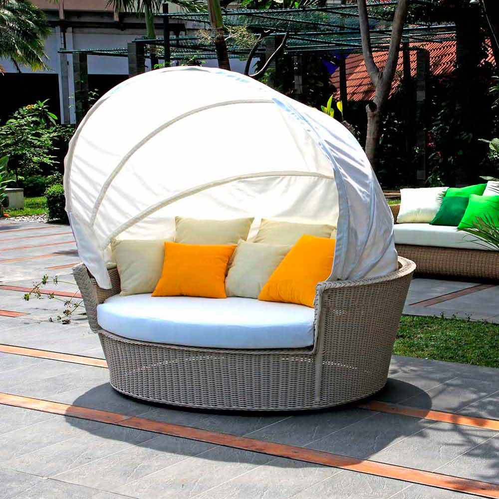 Hector es un bonito sofá de jardín que presenta un diseño moderno y original en forma de cesta. Es un sofá completamente artesanal.