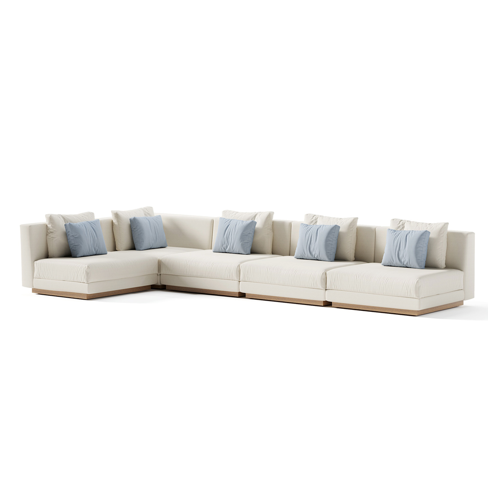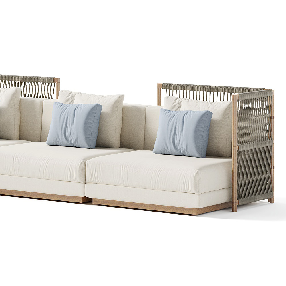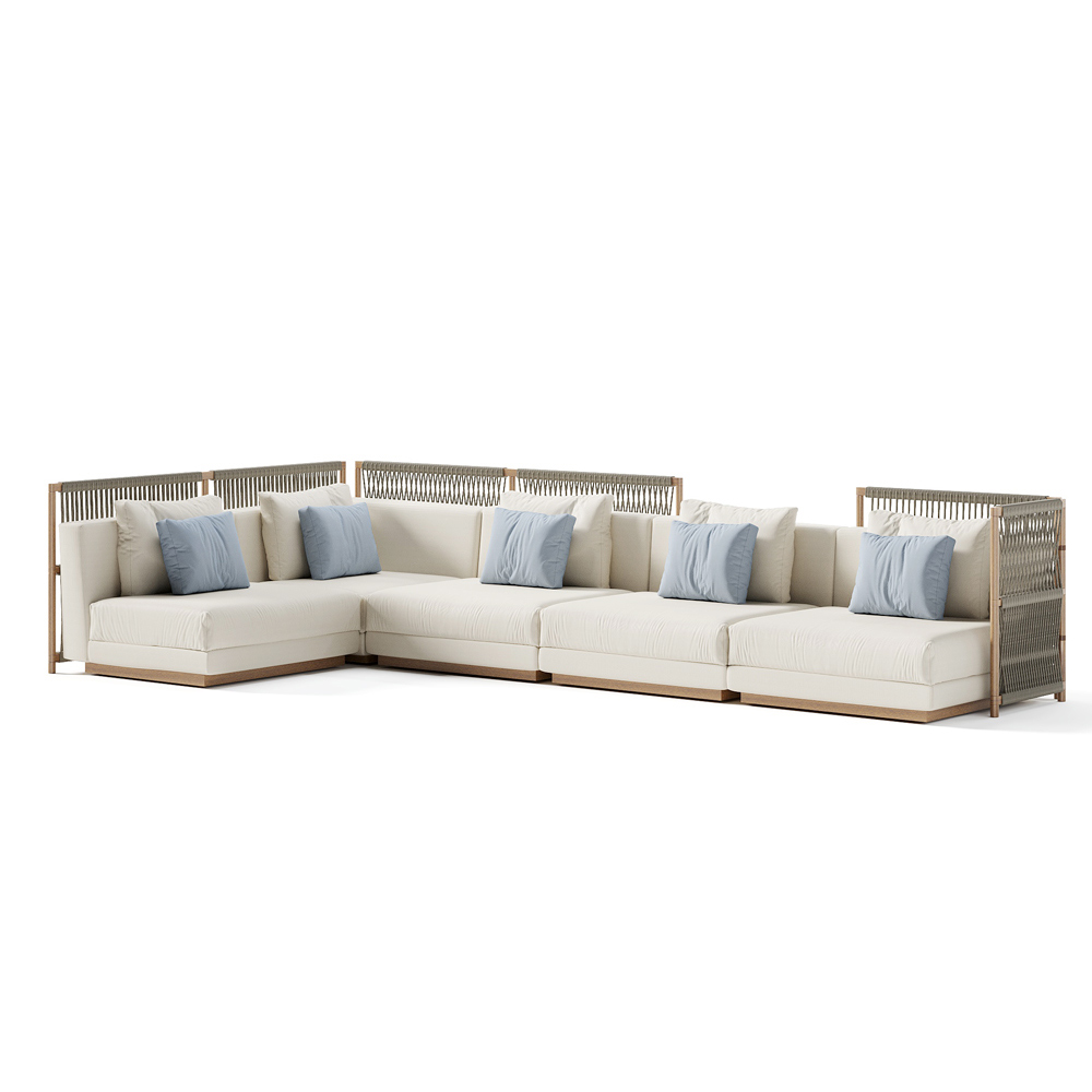 Composición de sofá de jardín con cojines tapizados en tejido Made in Italy