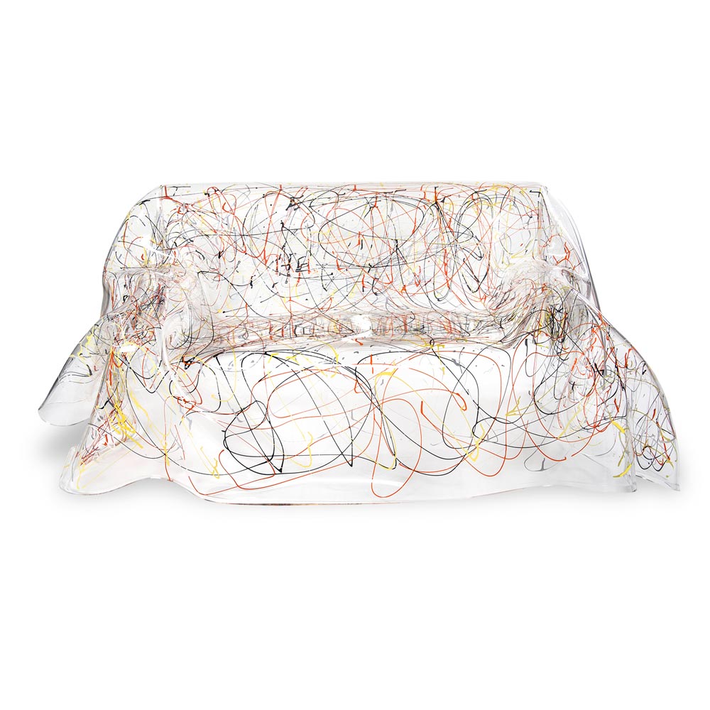 Sofá de diseño moderno en plexiglás blanco o multicolor, fabricado en Italia.