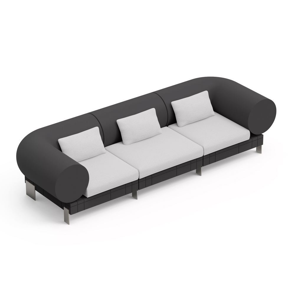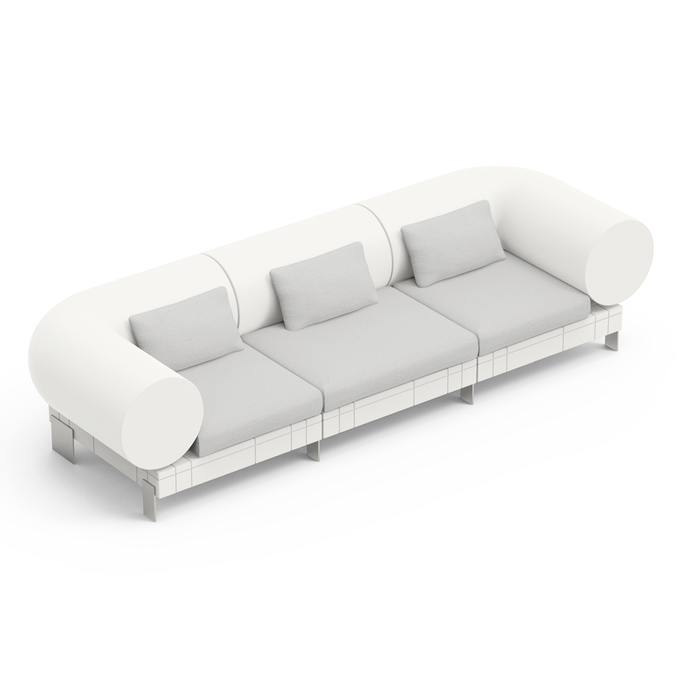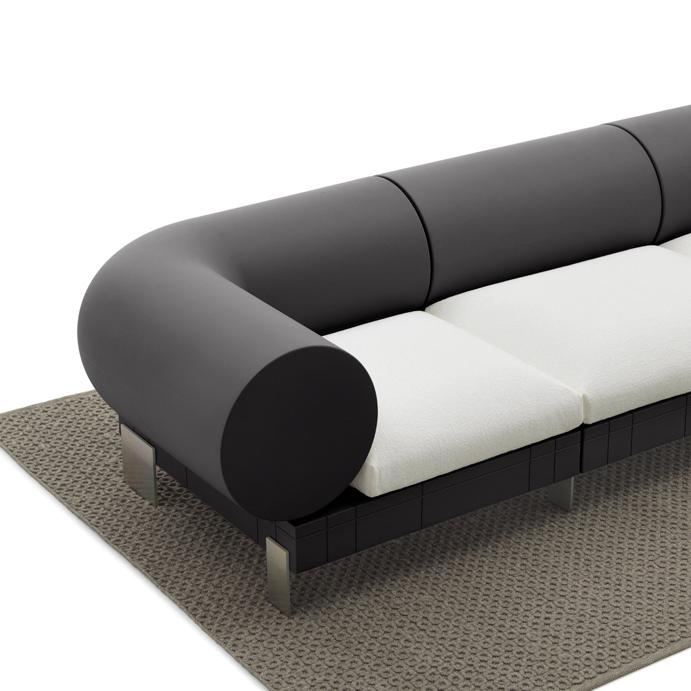 Este sofá contemporáneo combina comodidad y diseño moderno en un mueble que llama la atención. Caracterizado por líneas limpias y una forma innovadora con cilindros laterales, el sofá ofrece un toque de estilo único y funcional . Su paleta de colores introduce un elemento de luminosidad y frescura en cada espacio habitable.