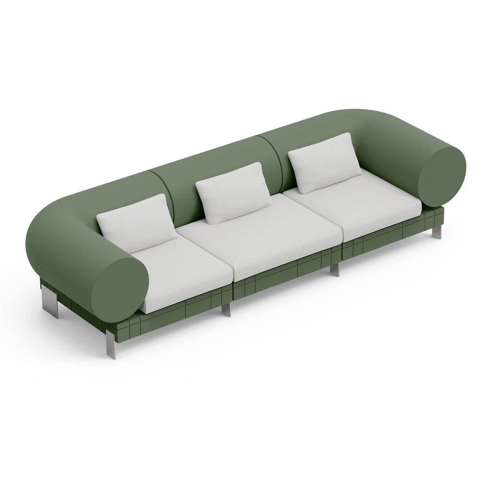 El sofá está sostenido por una fina base de metal que no sólo garantiza la estabilidad sino que añade un toque elegante y minimalista a todo el diseño. Los materiales de alta calidad garantizan durabilidad y comodidad , lo que lo hace perfecto para la relajación diaria.