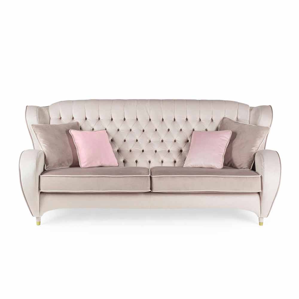 Sofá de terciopelo con capitoné estilo New classic Schinke