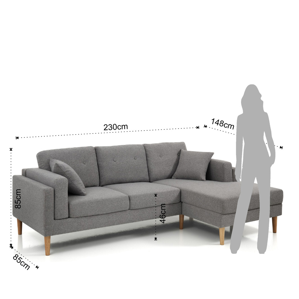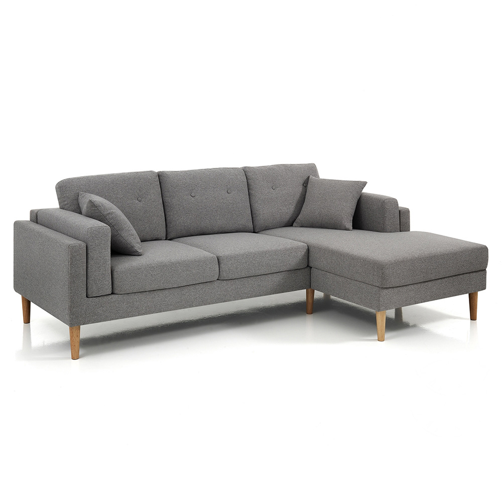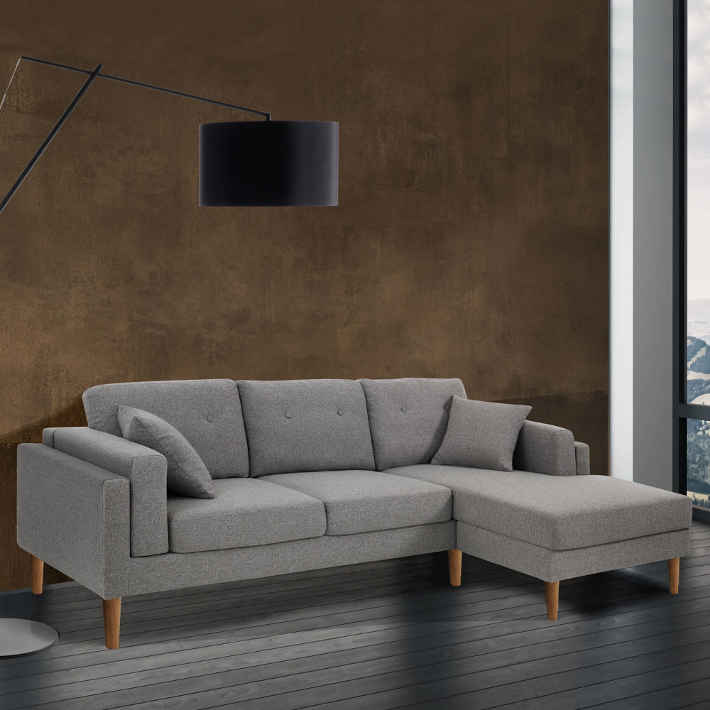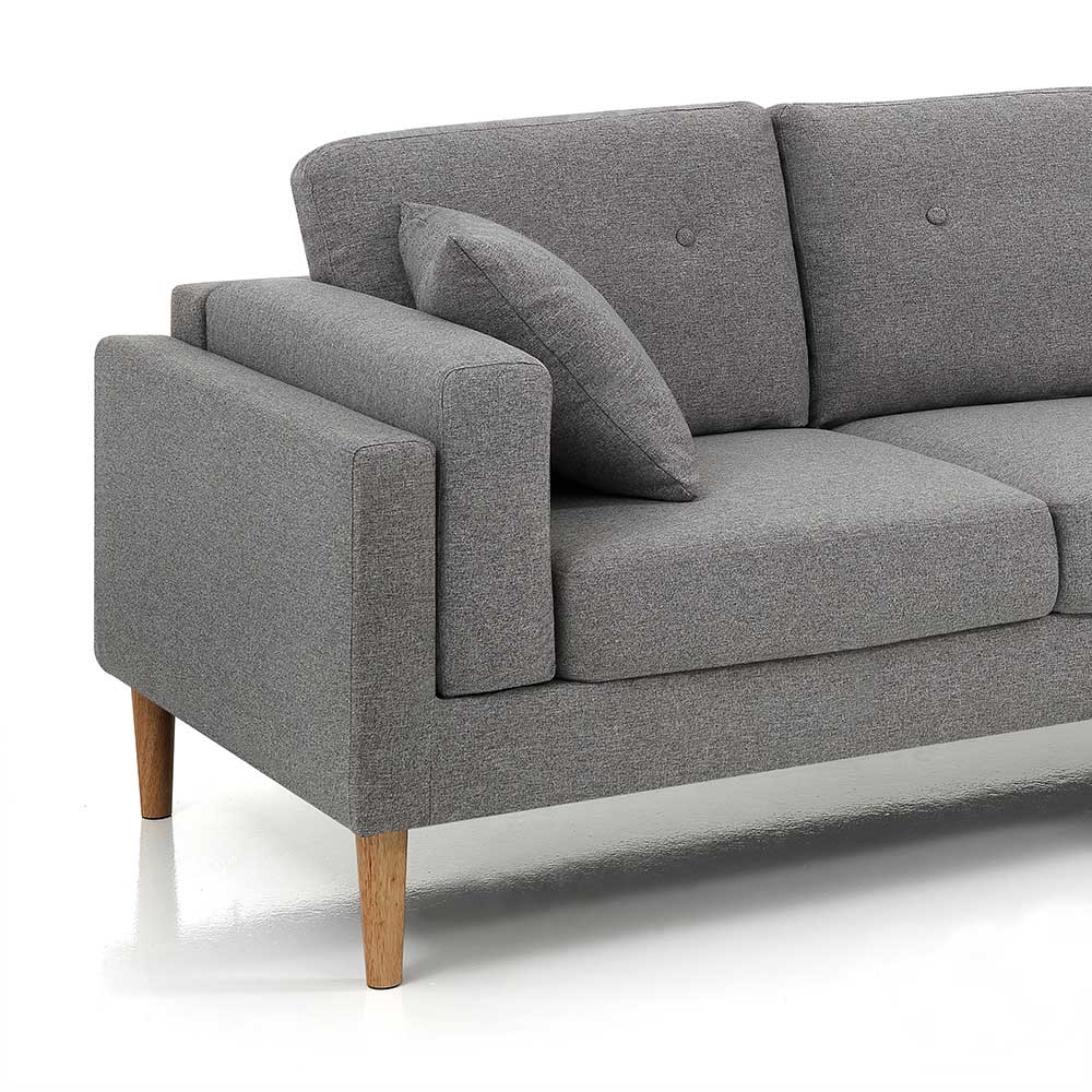 tapizado en tela gris con funda parcialmente desenfundable (sólo cojines de respaldo), patas de