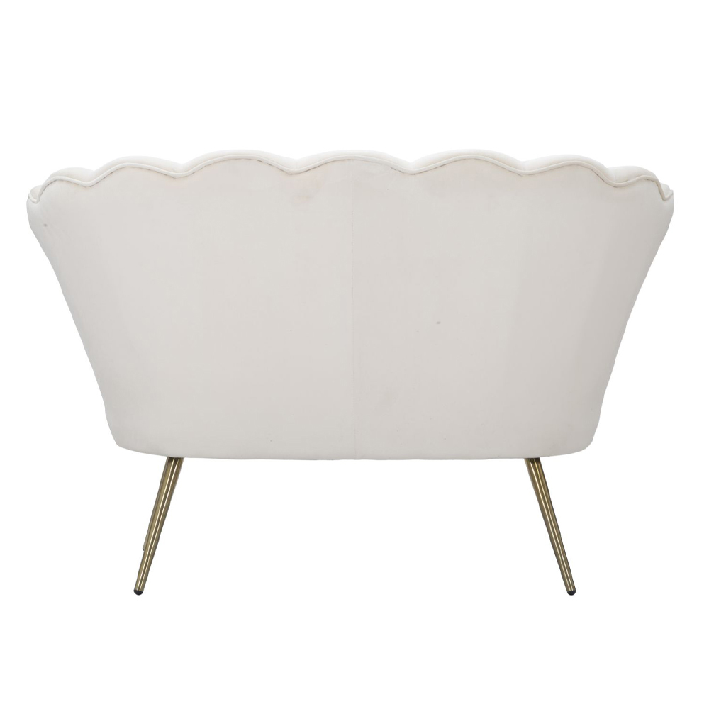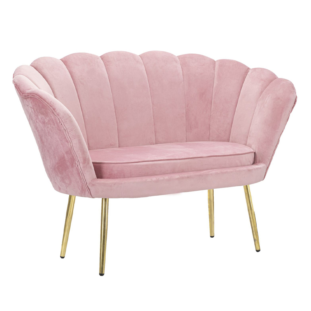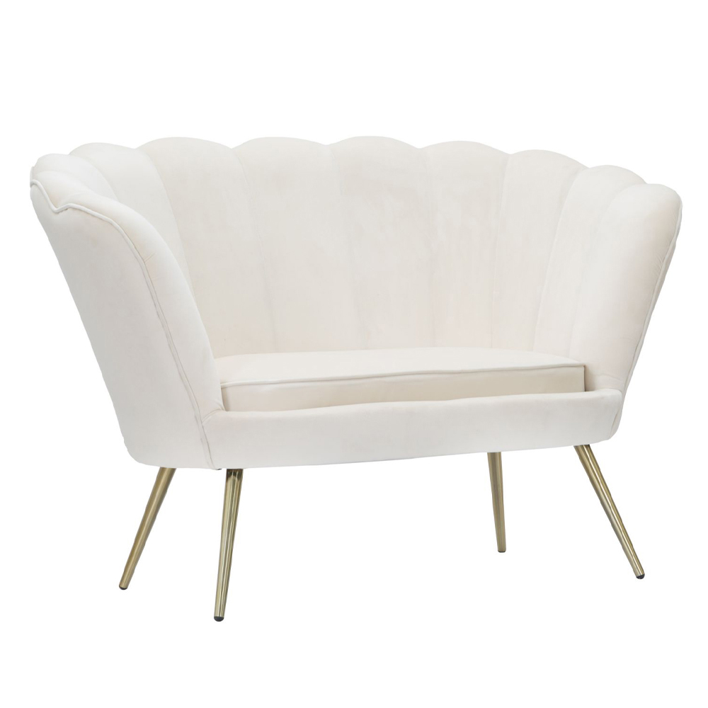 Sofá de 2 plazas tapizado en terciopelo con pies de hierro dorado.