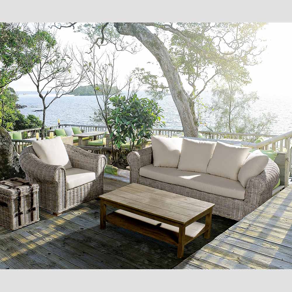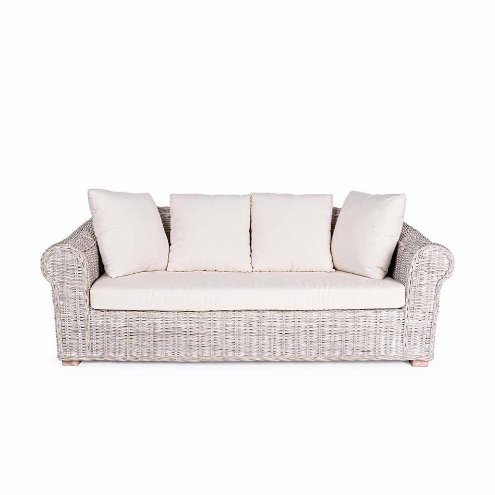 Sofá de jardín 3 plazas o Maxi en ratán natural con cojines - Keira