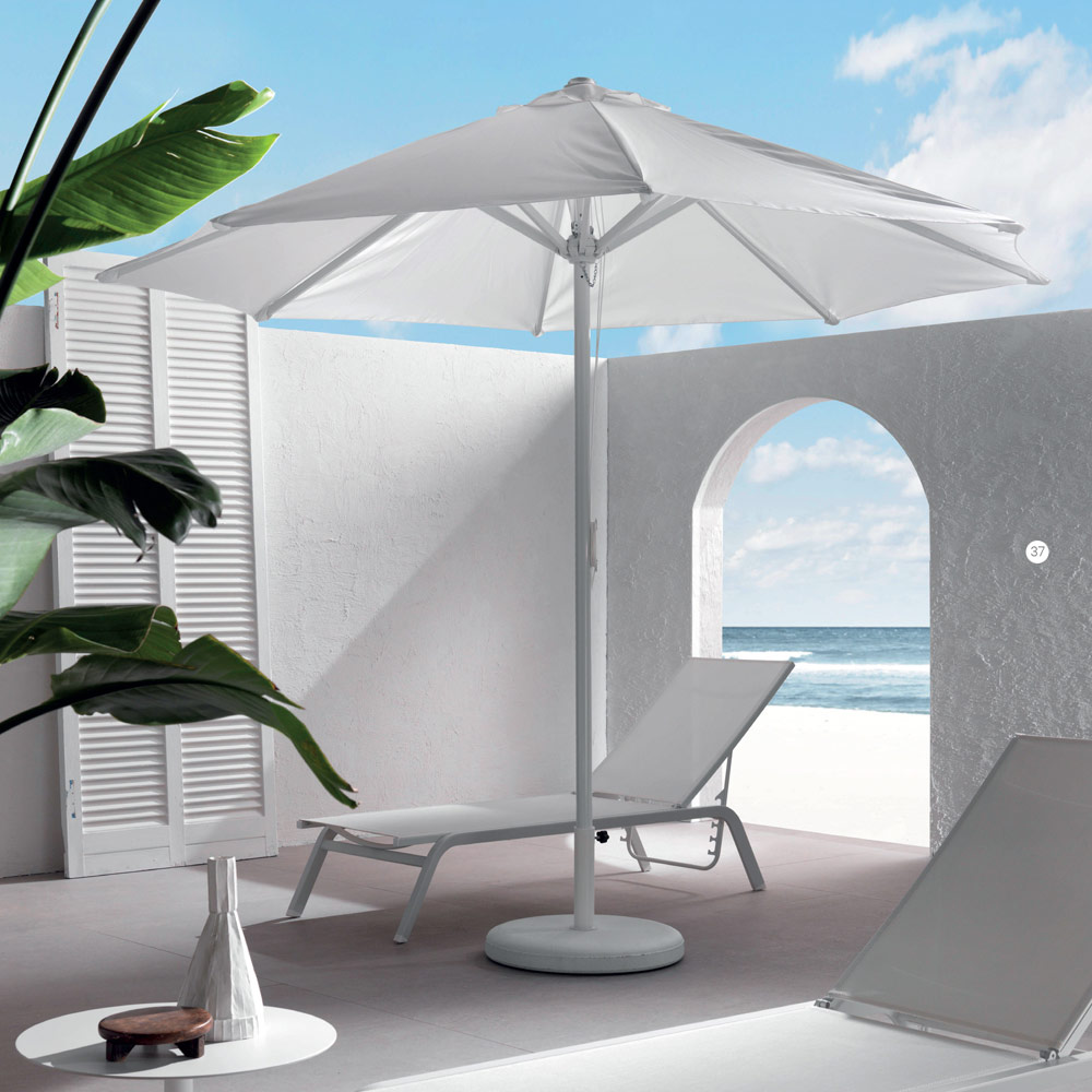 Paraguas de exterior con estructura de aluminio y tejido acrílico.