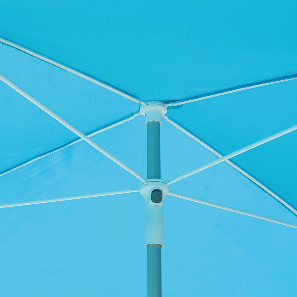 funda de tejido olefina de 190 g con alta protección UV. Altura máxima 3,03 metros. Ideal para ambientes como piscinas y hoteles, pero también para espacios domésticos como jardines y terrazas, esta sombrilla para exteriores tiene un