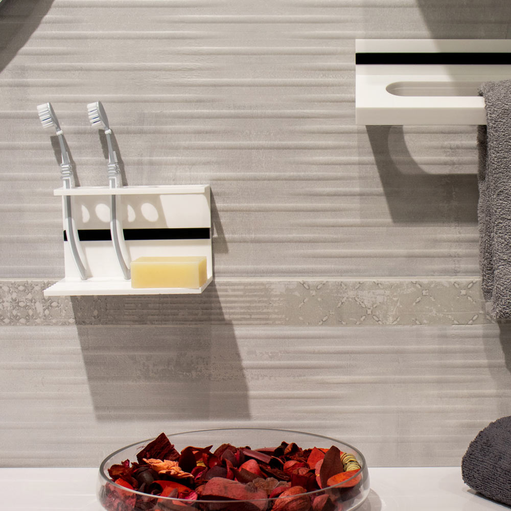 Elija este portacepillos , pasta de dientes y jabón de 6 mm de grosor como accesorio de baño para un ambiente moderno y lujoso fabricado íntegramente en Corian, un material higiénico de líneas esenciales.