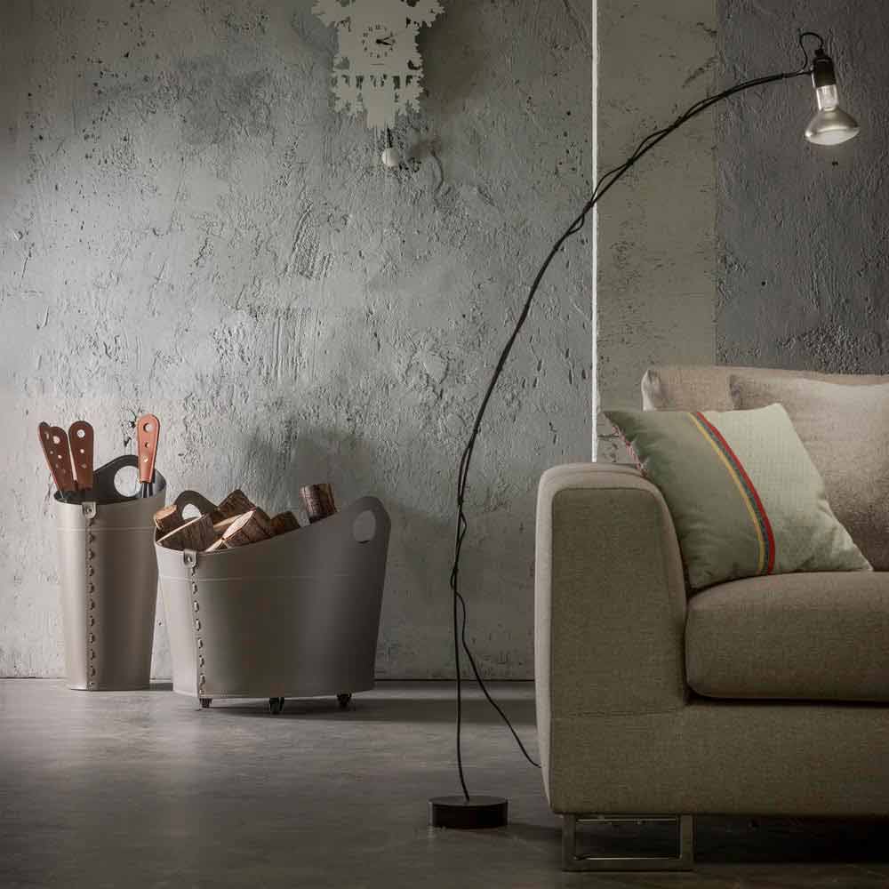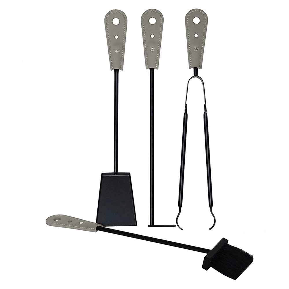 Para completar la composición, un juego de hierros para chimenea hechos de acero pintado y completo con mango de cuero. El conjunto de accesorios para la chimenea incluye: cuchara, póker, brocha para resortes e inodoro, todos de 65 cm de largo.