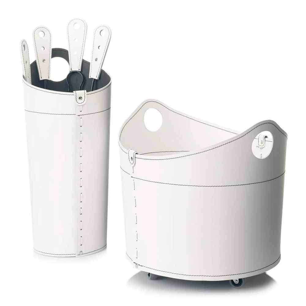El práctico soporte de hierro Nidac está hecho de cuero regenerado y cuenta con un fondo de madera contrachapada, también cubierto en cuero. El interior está hecho de material ignífugo.