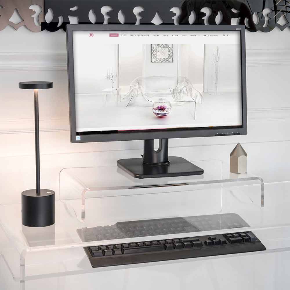 Soporte para monitor en plexiglás transparente o ahumado de diseño Made in Italy.