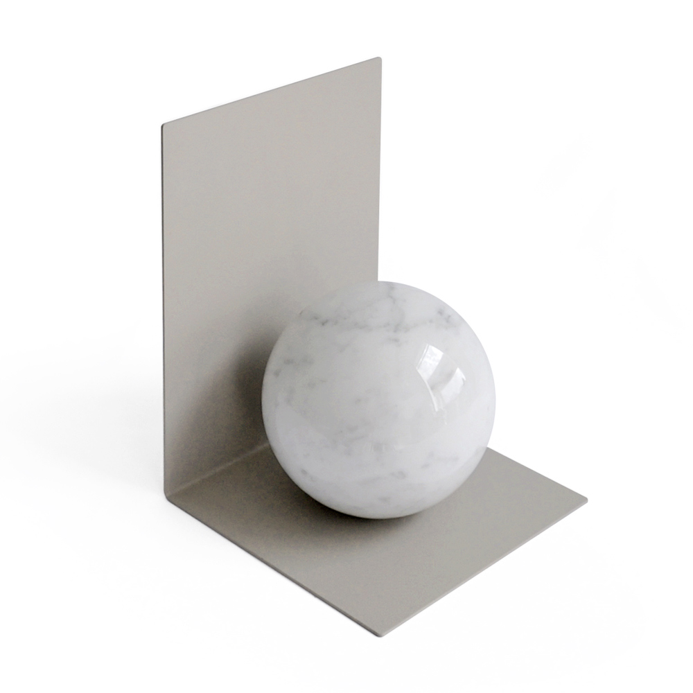 Este sujetalibros de mármol es la síntesis perfecta entre funcionalidad y escultura moderna . El diseño es audazmente minimalista, donde una esfera de mármol se encuentra con una placa de metal, creando un contraste visual que es un verdadero placer para la vista.