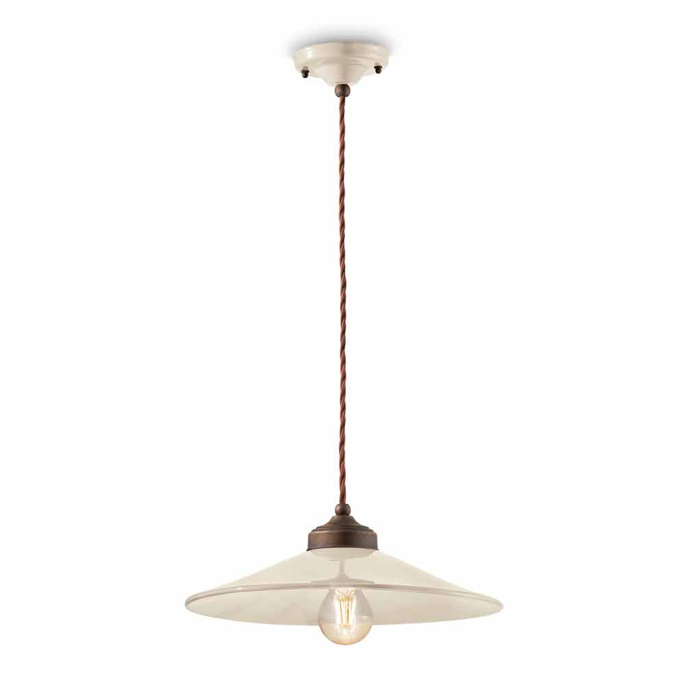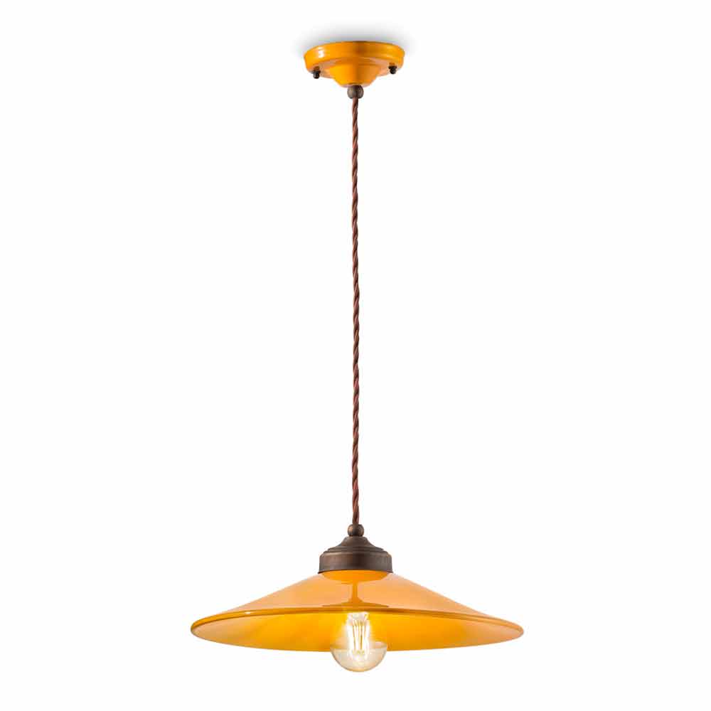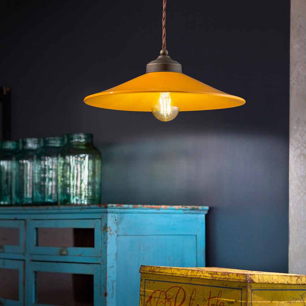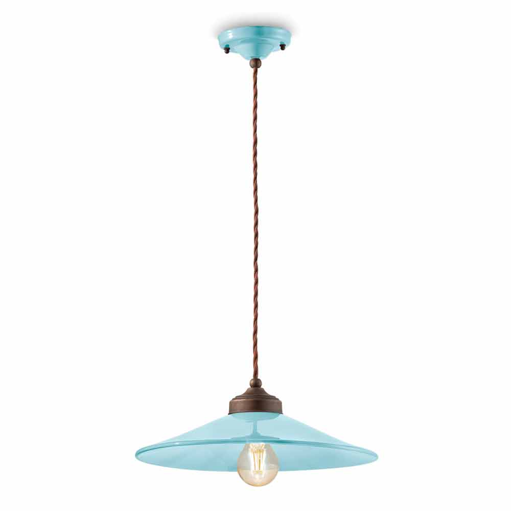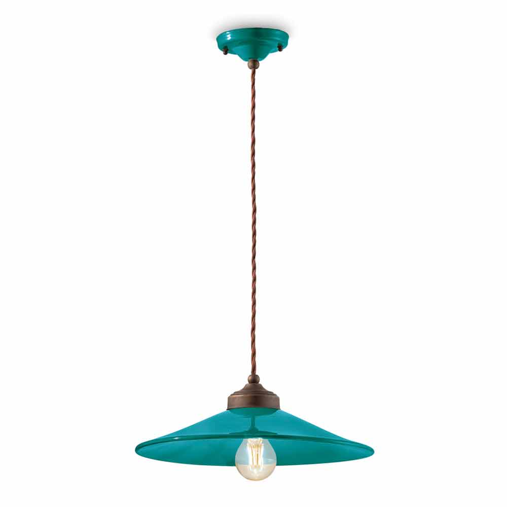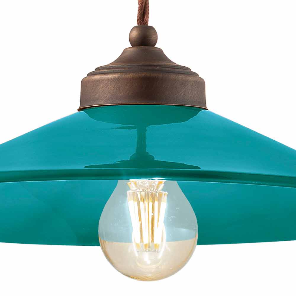 Esta hermosa suspensión consta de una estructura de latón envejecido con un difusor de cerámica de color brillante, disponible en diferentes colores.