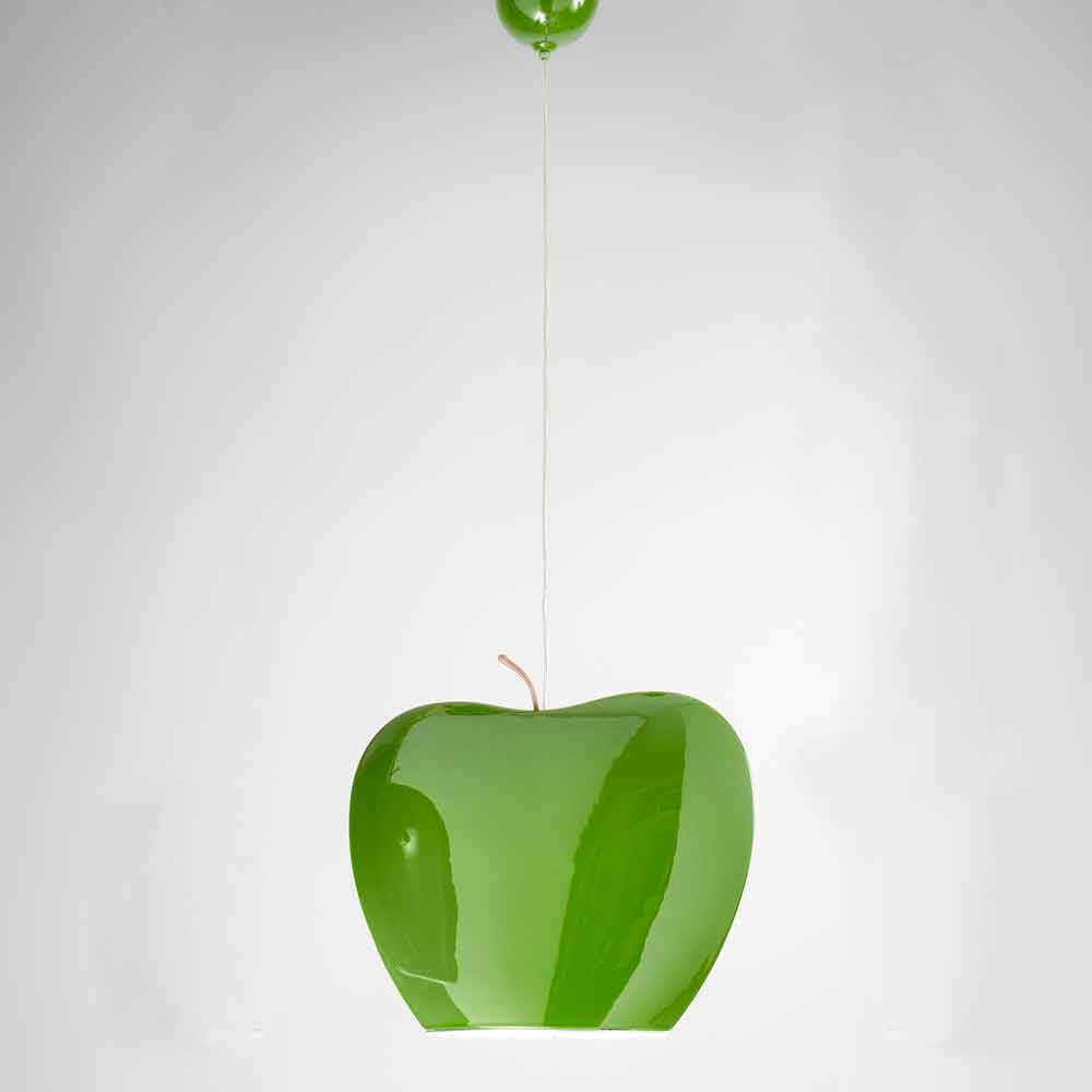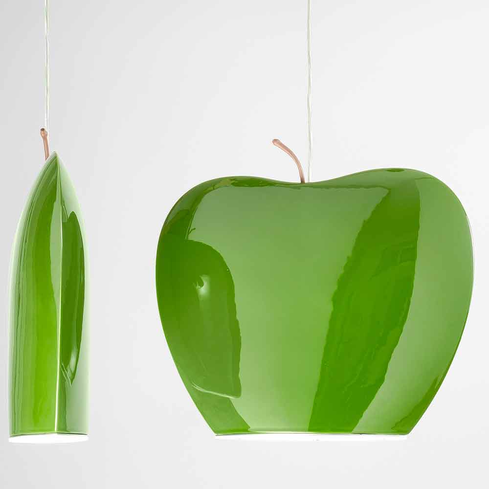Iluminación con un diseño excéntrico: suspensión de cerámica en forma de manzana, colección Fruits Aldo Bernardi.