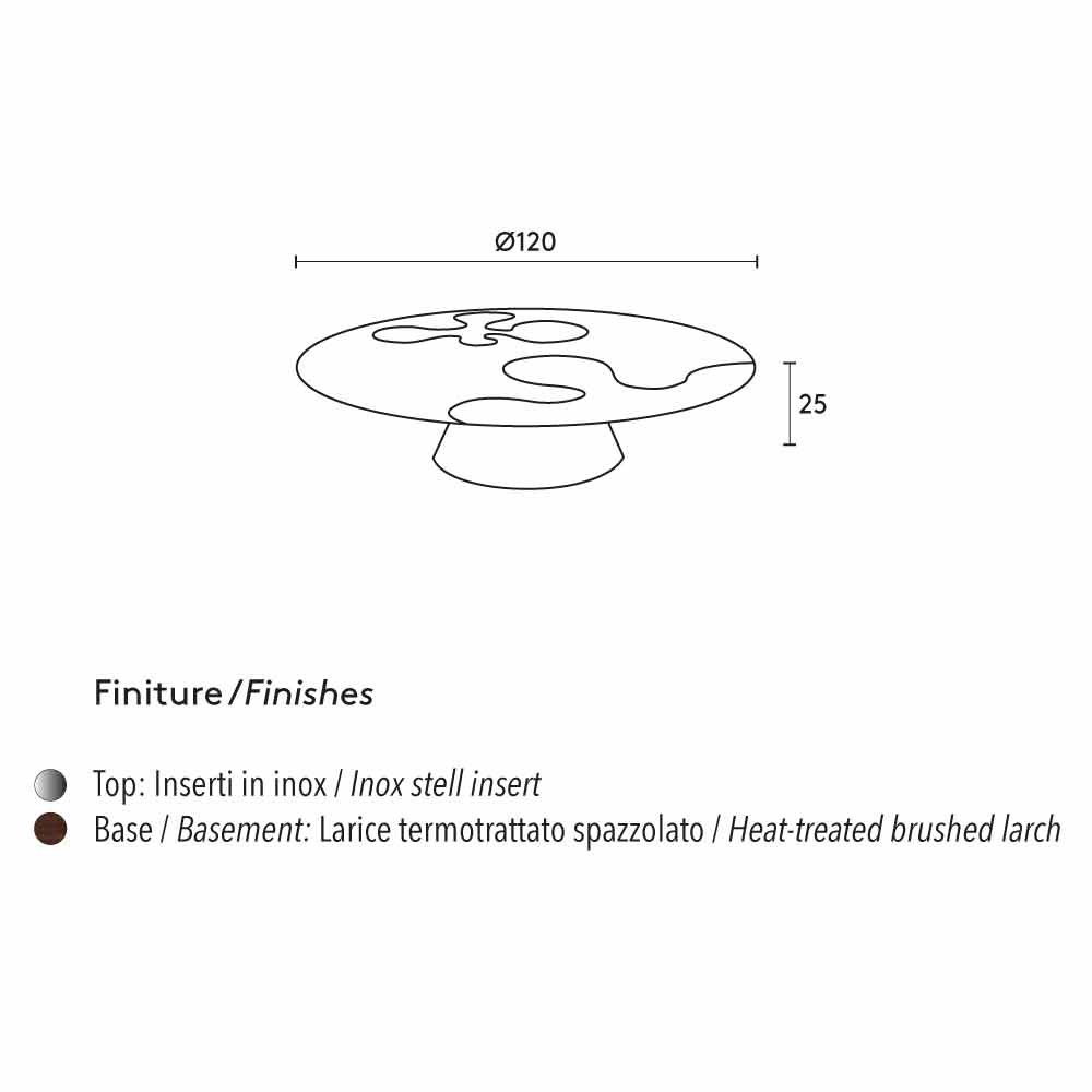 Tabla diseño moderno en madera de alerce con inserciones de acero Giglio, fabricado en Italia
