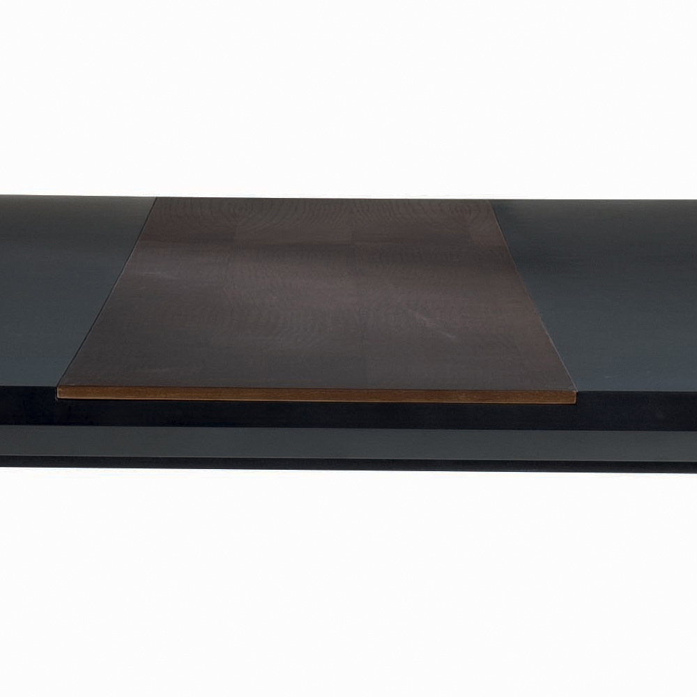 Mesa de comedor completamente hecha en Italia que consta de cuatro patas de apoyo en madera maciza de haya con acabado de fresno teñido. y tapa en mdf acabado antracita con inserto de madera maciza en fresno teñido. La combinación de los materiales elegidos enriquece esta mesa de comedor con una fuerte personalidad y le permite garantizar solidez, estabilidad y una excelente durabilidad . El resultado es, por tanto, una mesa de comedor moderna y vanguardista, caracterizada por una marcada versatilidad de uso para decorar con estilo cualquier situación doméstica.