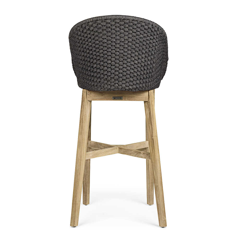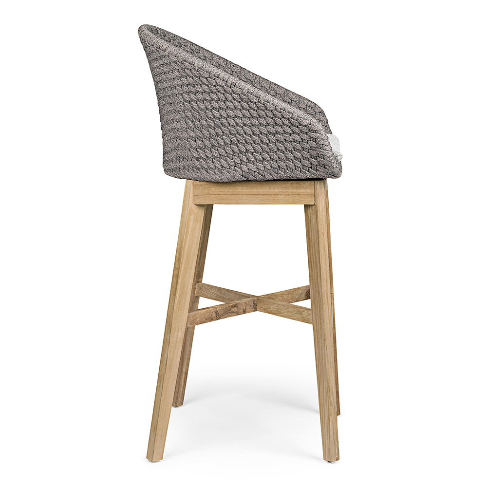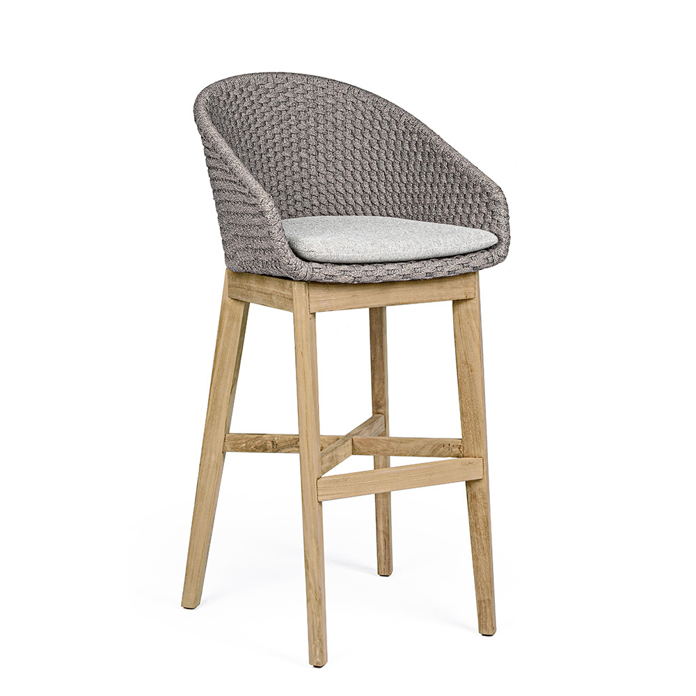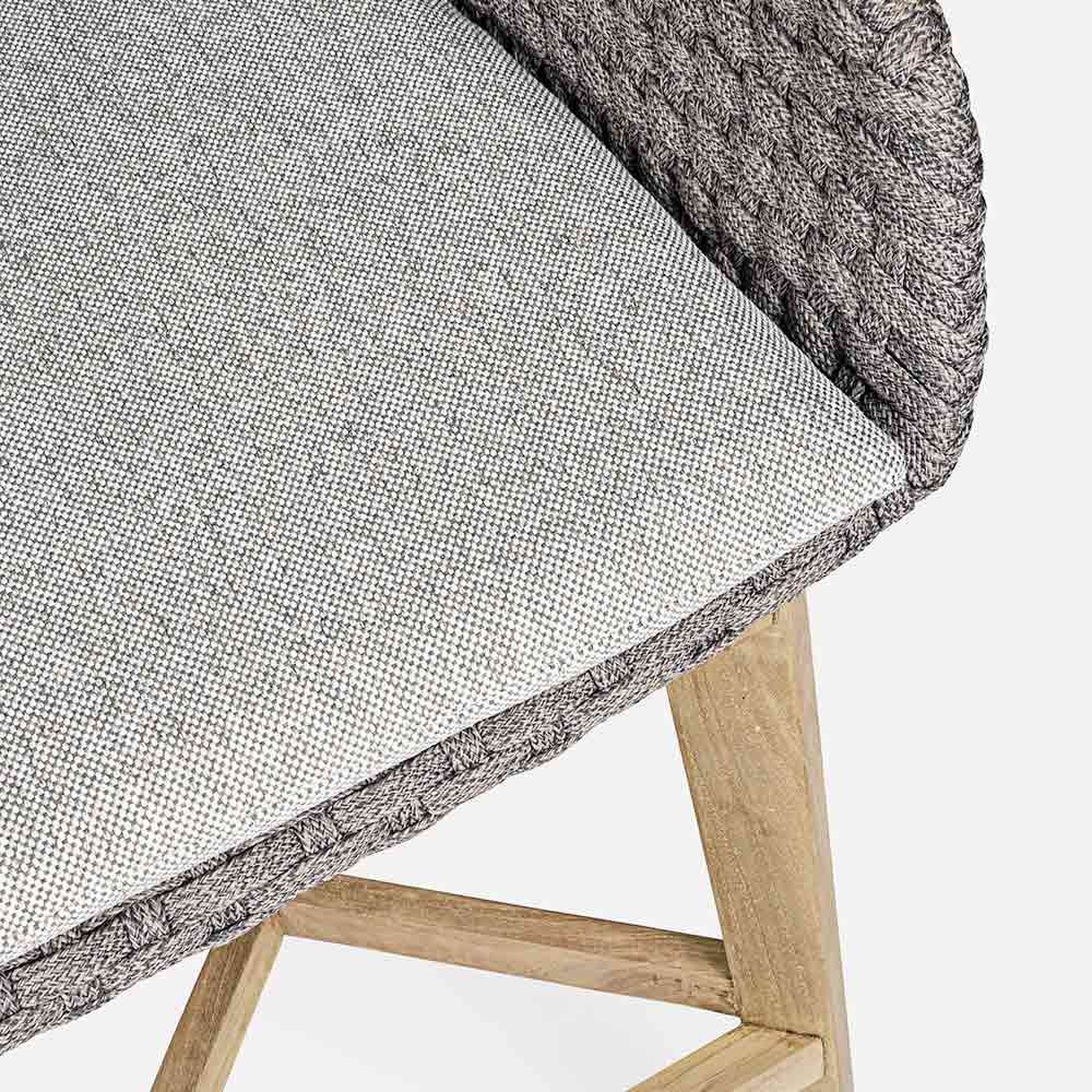 Taburete de exterior de alta calidad en teca y cuerda con cojín de tela extraíble, 2 piezas.