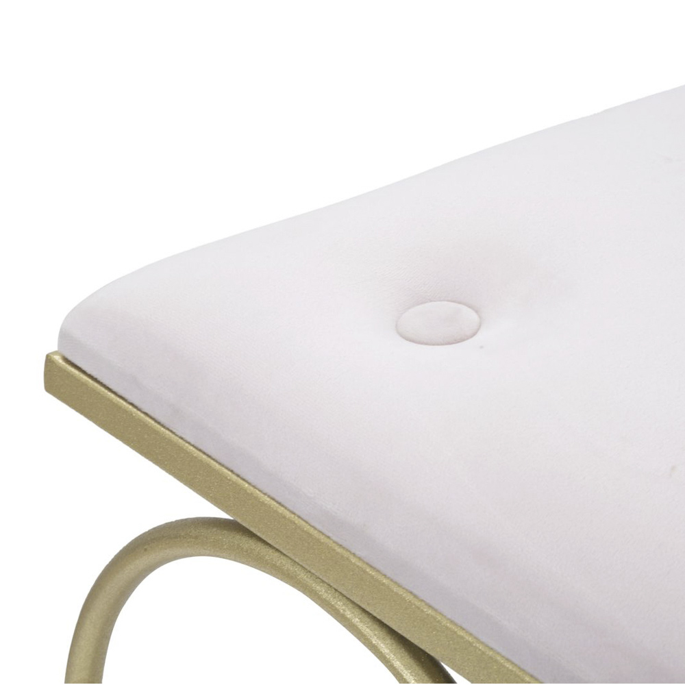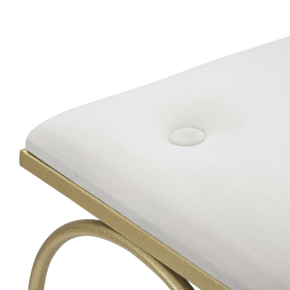 Taburete bajo moderno con estructura de hierro acabado dorado y asiento tapizado en esponja y