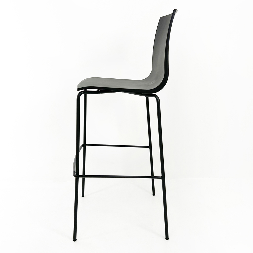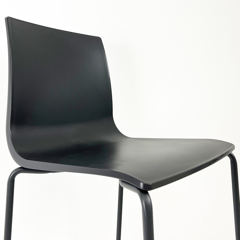 Taburete moderno fabricado en Italia, compuesto por una carcasa de tecnopolímero reciclable con acabado antracita y una estructura de 4 patas con reposapiés de acero tubular del mismo color que el asiento. con un diámetro de 16 mm que permite apilar hasta un máximo de 4 unidades.