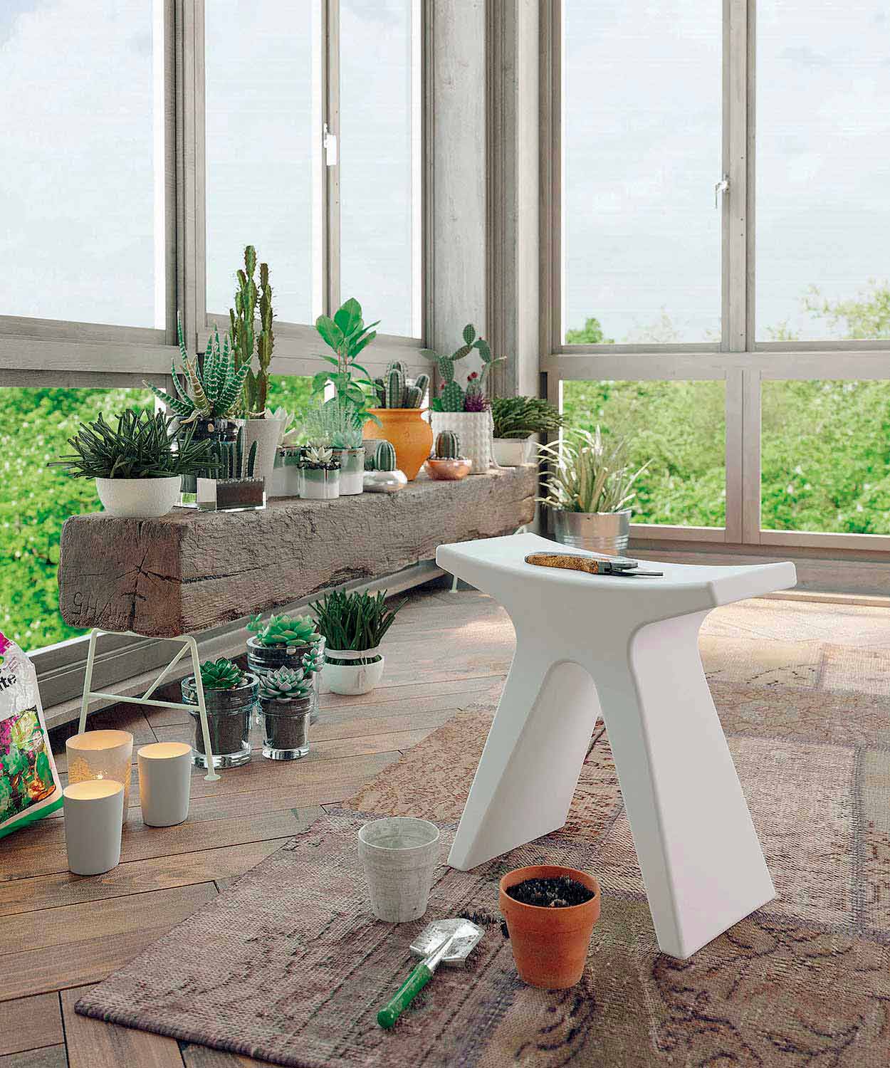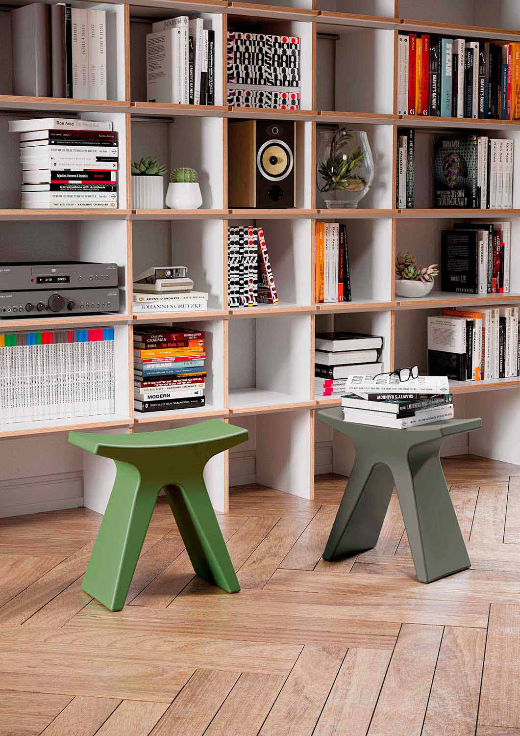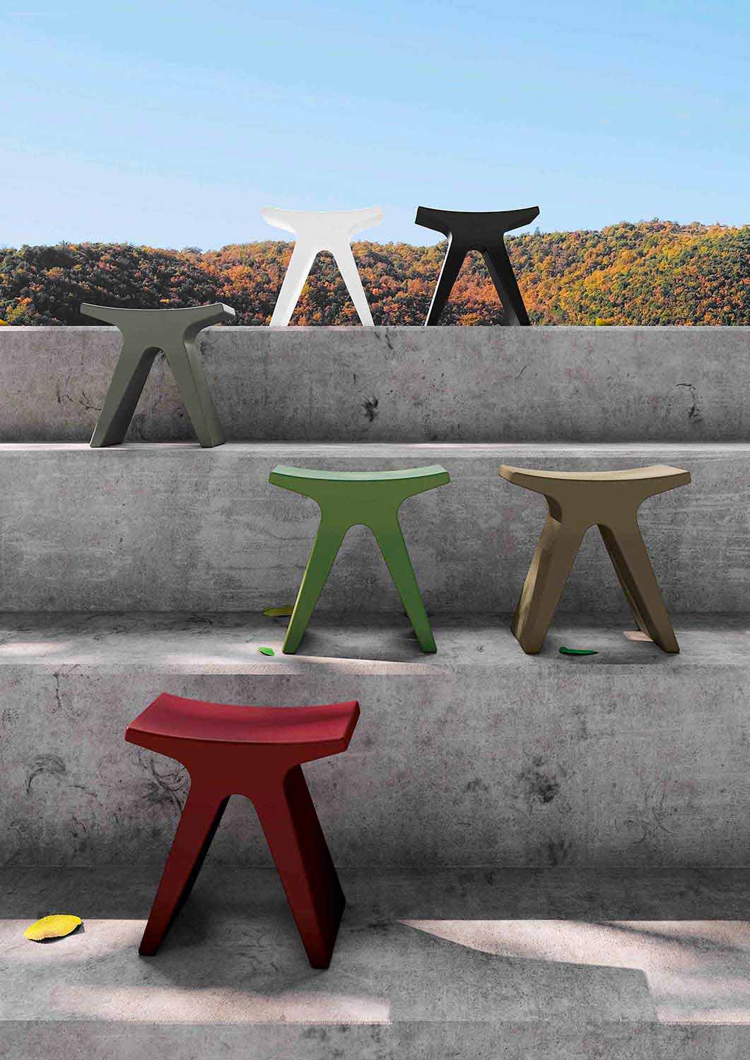 Prue es un taburete bajo para exteriores divertido y funcional que se caracteriza por un diseño único y minimalista, pero al mismo tiempo elegante y con clase, que desempeña no solo una función práctica sino también estética para todos los entornos, domésticos y públicos.