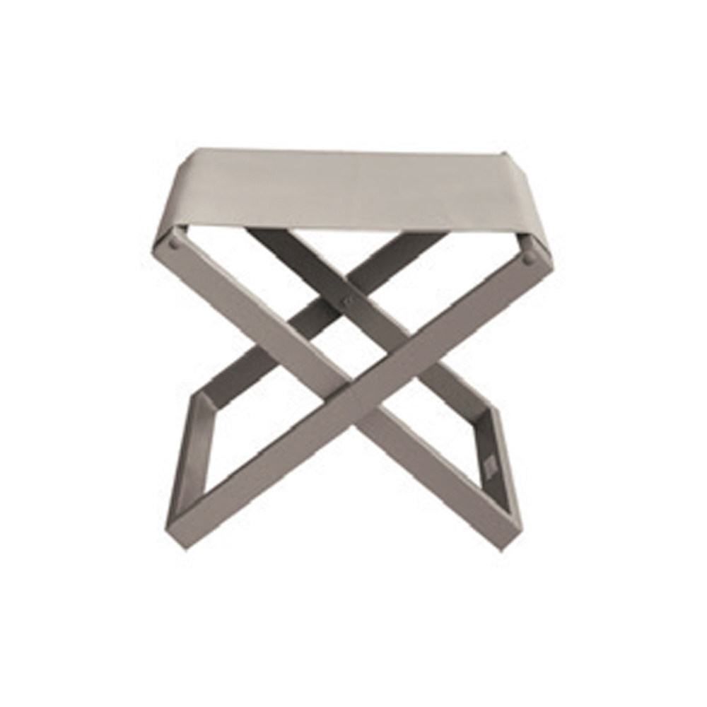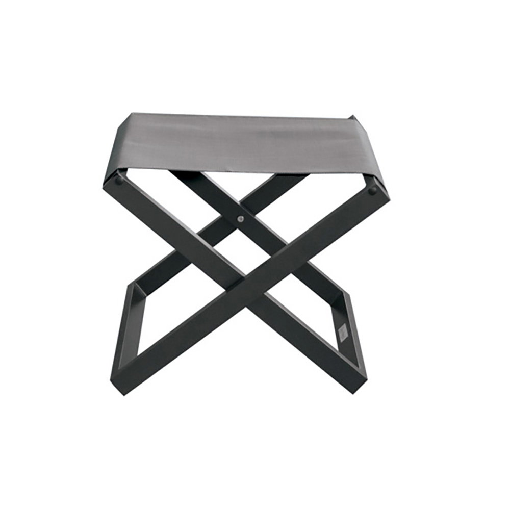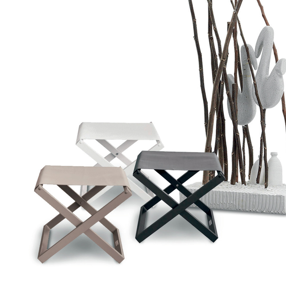 Taburete bajo para exterior con estructura en aluminio pintado en polvo y textileno.
