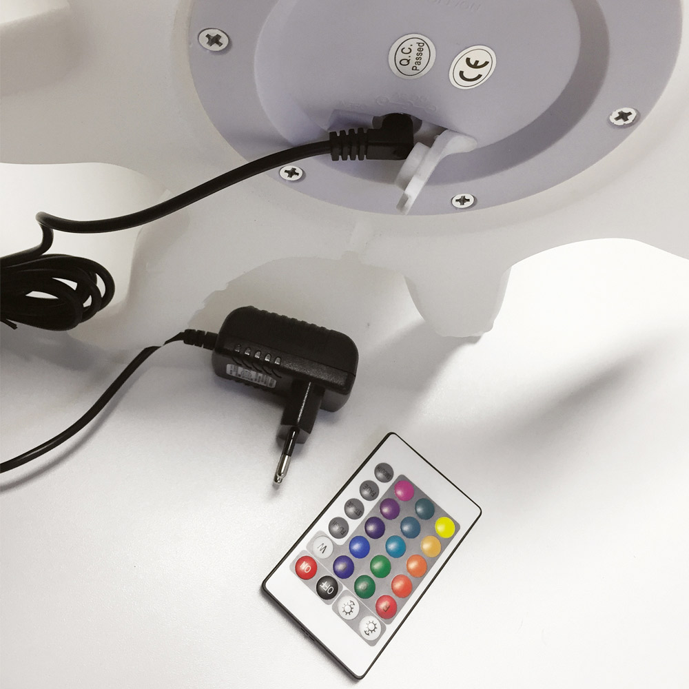 Taburete de jardín realizado con estructura de polipropileno translúcido y luz LED multicolor.