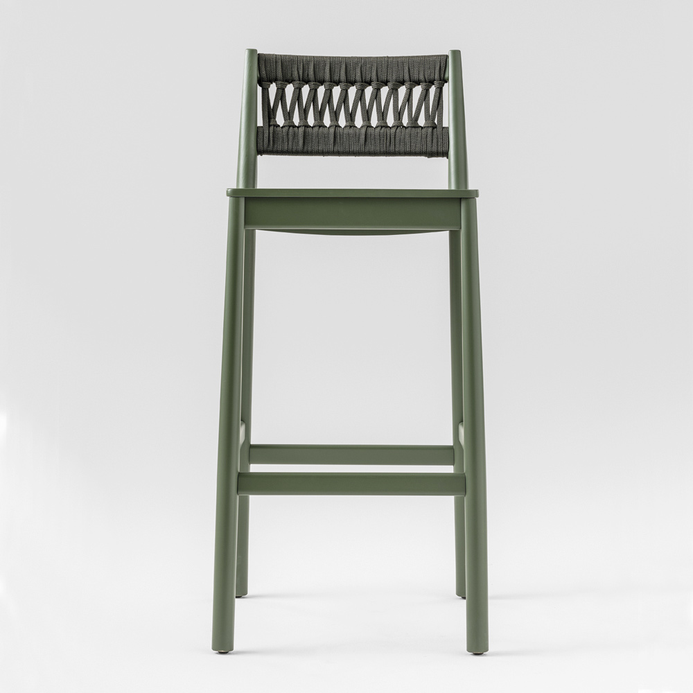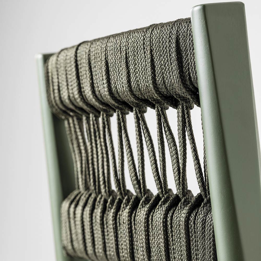 Taburete alto fabricado en Italia con estructura de madera de haya lacada y respaldo en cordón verde militar. Sencillo pero a la vez original y creativo, este taburete encarna un diseño tradicional revisado para crear un producto innovador y moderno , características obtenidas gracias a la peculiaridad del tejido de cuerdas que recubre todo el respaldo para darle un aspecto nuevo y moderno. vanguardia. Gracias al acabado discreto y sobrio de la estructura, resulta ser un asiento extremadamente versátil cuya personalidad se decide por el color elegido para la cuerda, logrando ofrecer soluciones sobrias y discretas o extravagantes y coloridas.