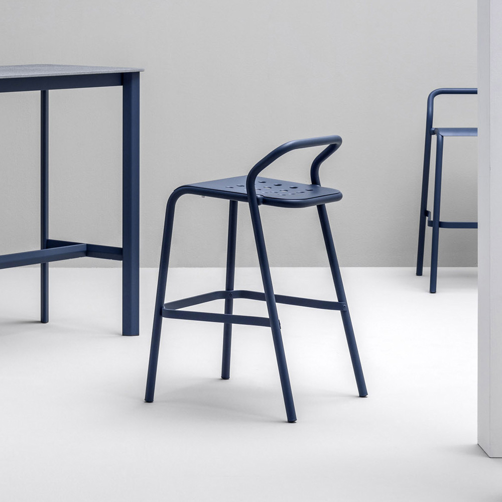 Taburete de exterior con estructura en aluminio pintado en polvo Made in Italy.