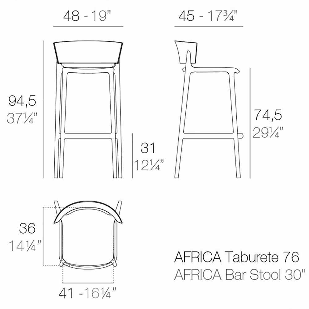 El taburete al aire libre de África diseñado para sus espacios exteriores e interiores. El material utilizado es polipropileno inyectado con aire y moldeado de fibra de vidrio.