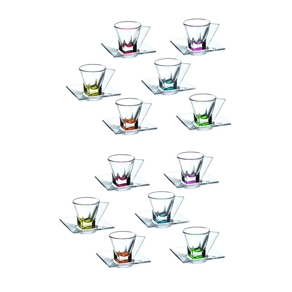 Juego de tazas de café en cristal ecológico transparente o coloreado, 12 piezas fabricadas en Italia.