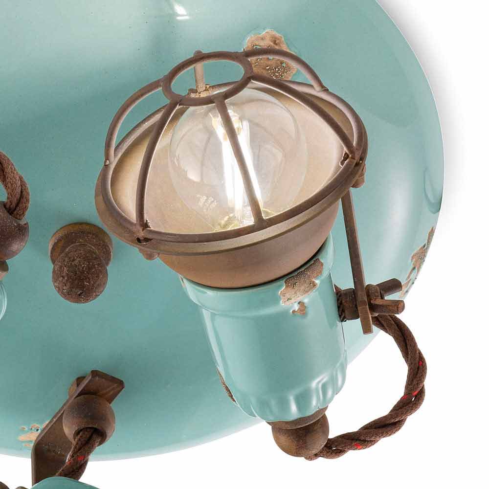 Luminaria direccional, cerámica con acabados vintage en perfecta armonía con el metal oxidado: una lámpara de techo única en su estilo, con sabor antiguo, perfecta para los ambientes más refinados.