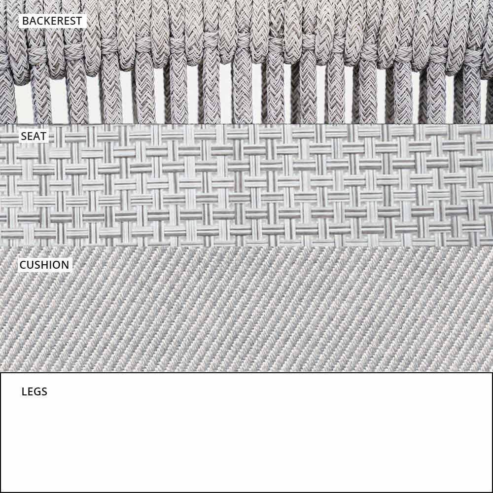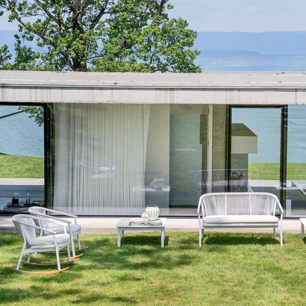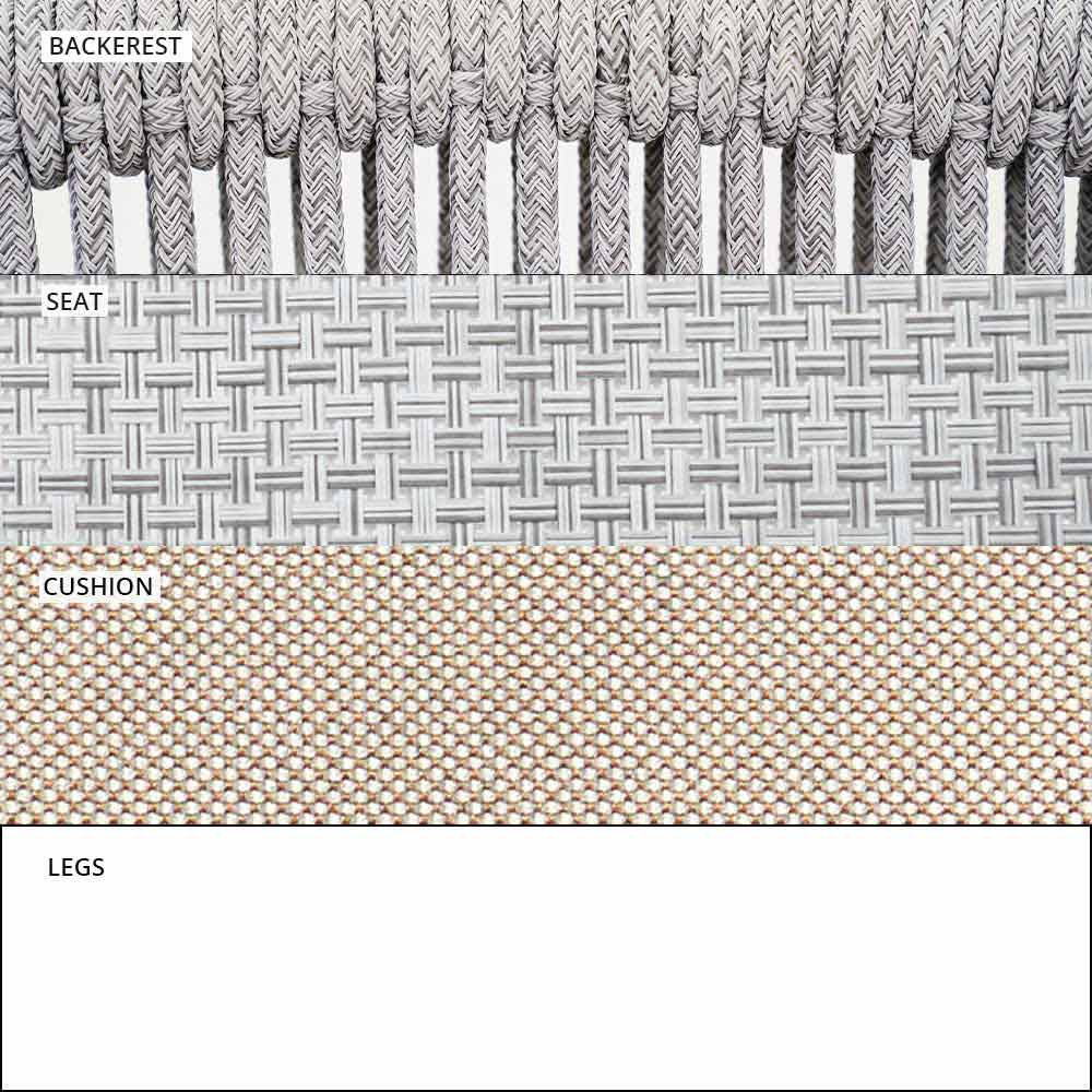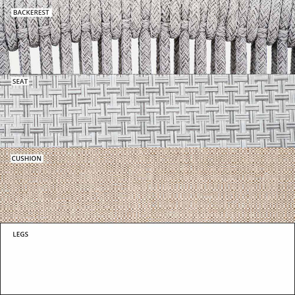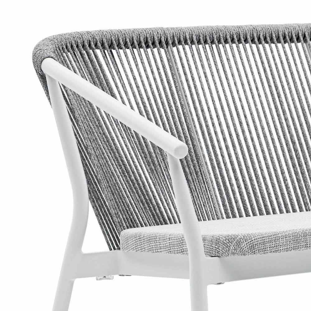 El entrelazado del respaldo en el cordón sintético VAR # TEX mejora la estética de este sofá diseñado para disfrutar de los días al aire libre en compañía.